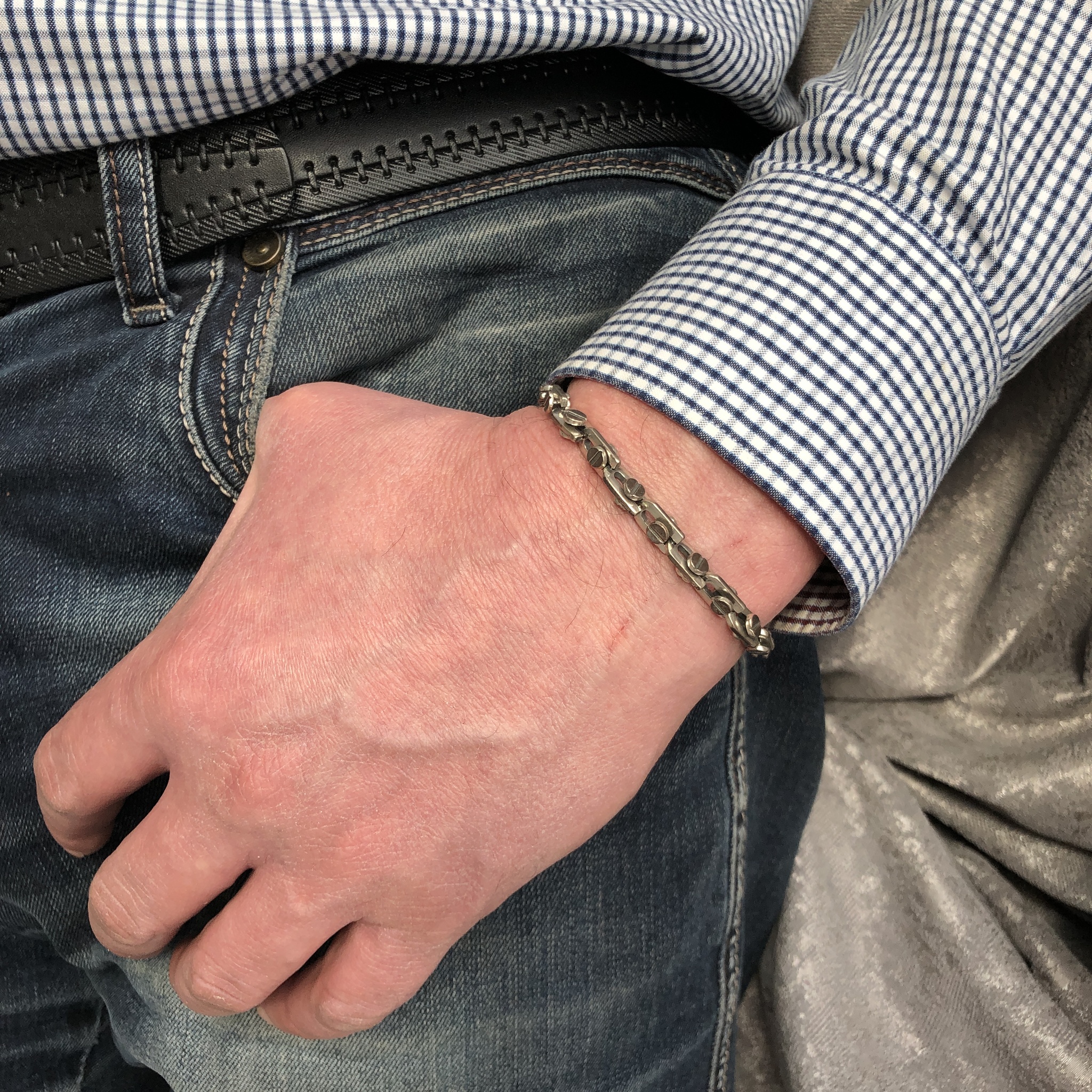 Браслет антистресс с подвижными элементами. Черненое серебро 925. Застежка карабин.