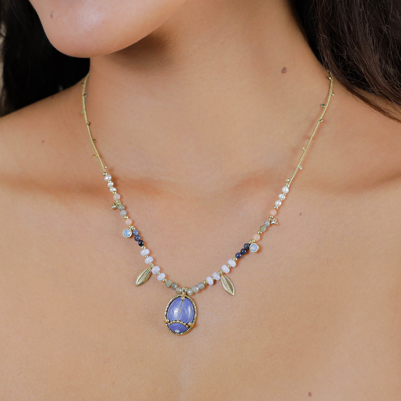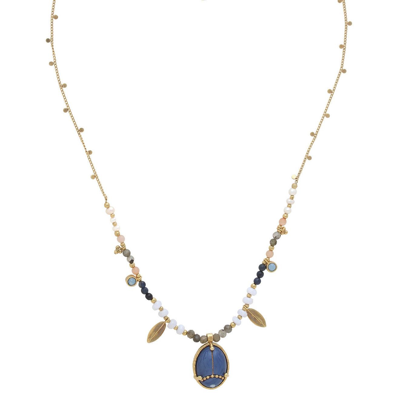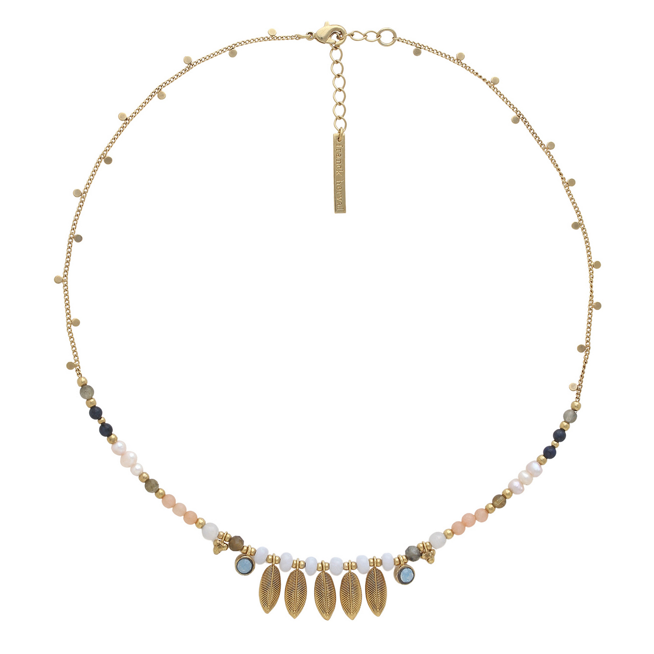 Колье Franck Herval, Palma, с лунным камнем, жемчугом, халцедоном. лазуритом, лабрадоритом и кристал