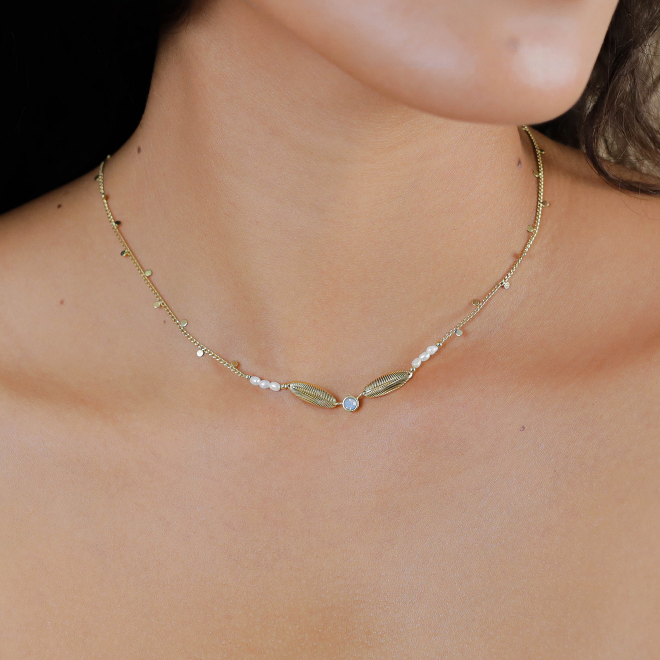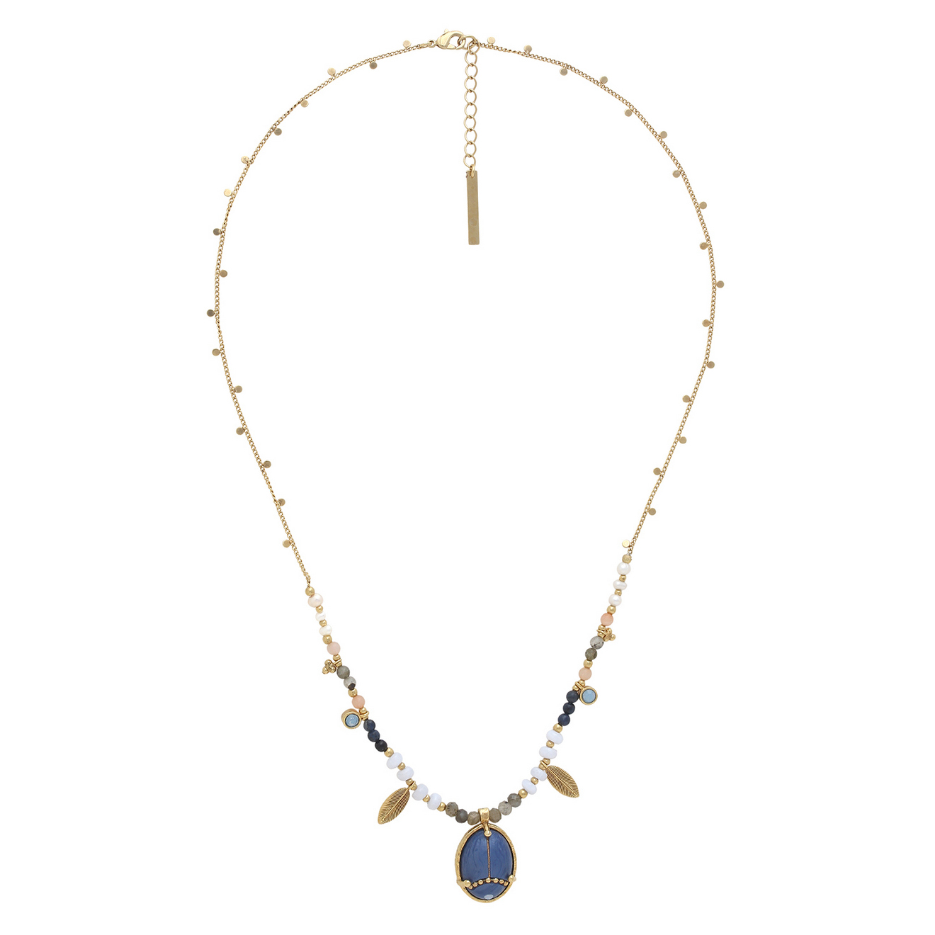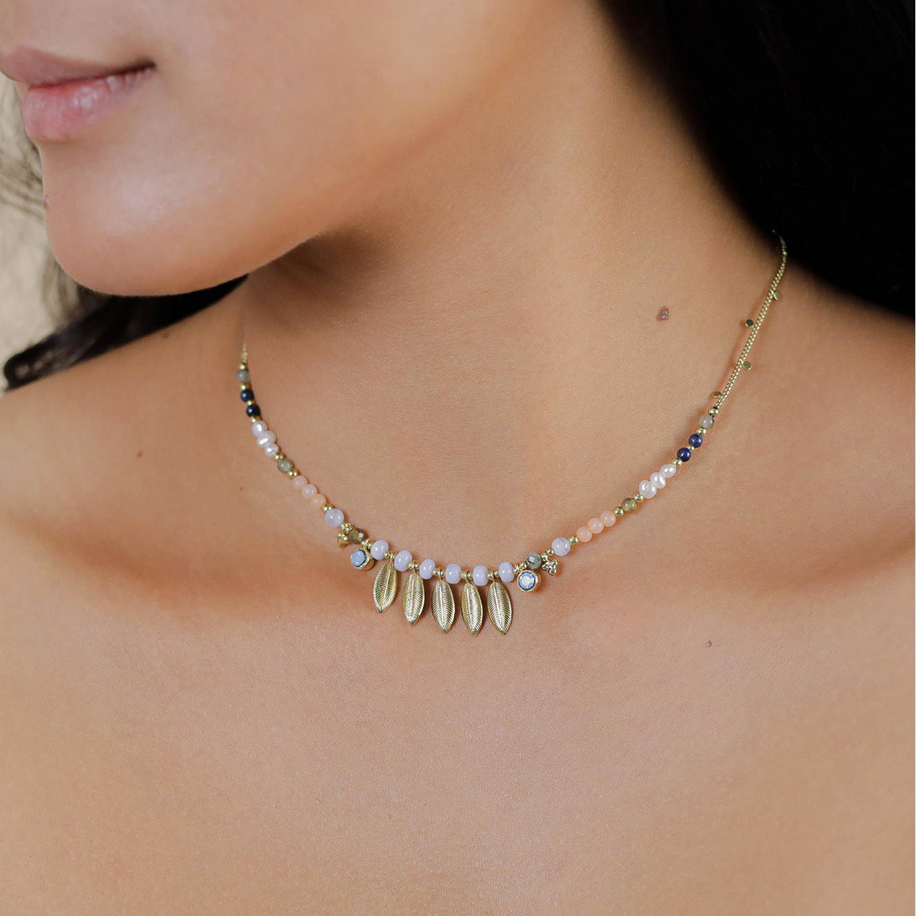 Колье Franck Herval, Palma, с лунным камнем, жемчугом, халцедоном. лазуритом, лабрадоритом и кристал