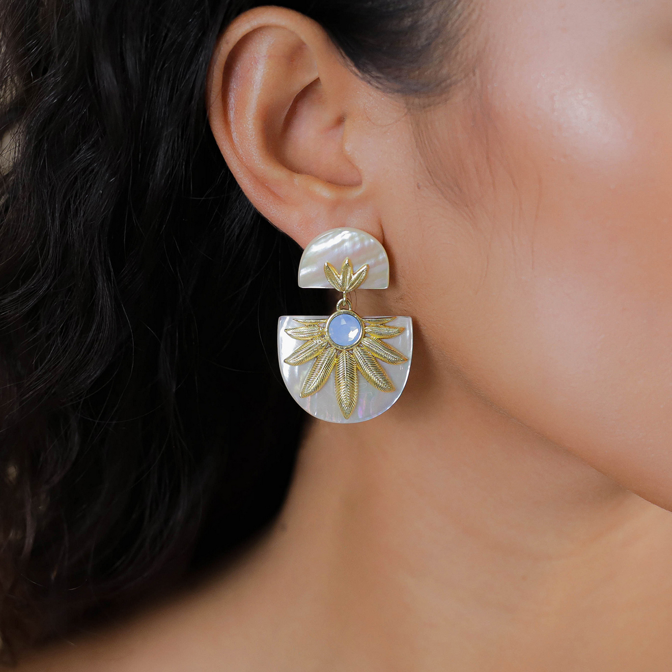 Серьги Franck Herval, Palma, с перламутром, лабрадоритом, лазуритом, халцедоном и лунным камнем, FH2