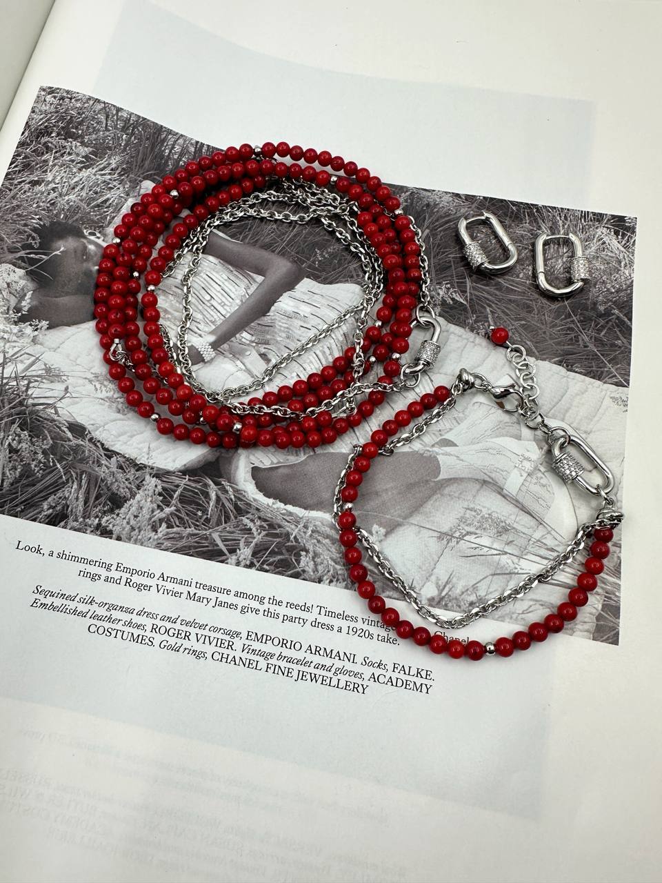 Браслет "Гея" с кораллом, оттенок серебро