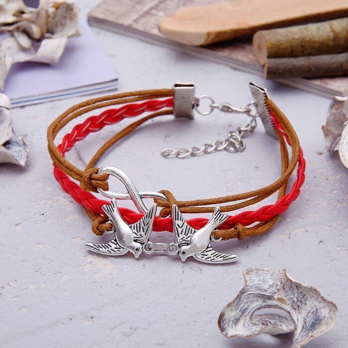 Браслет из экокожи с серебряными вставками. Застежка карабин. Регулировка длины.