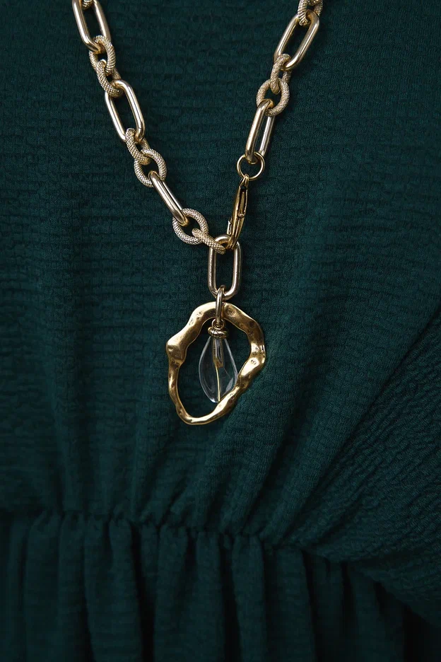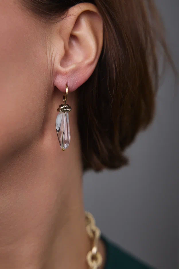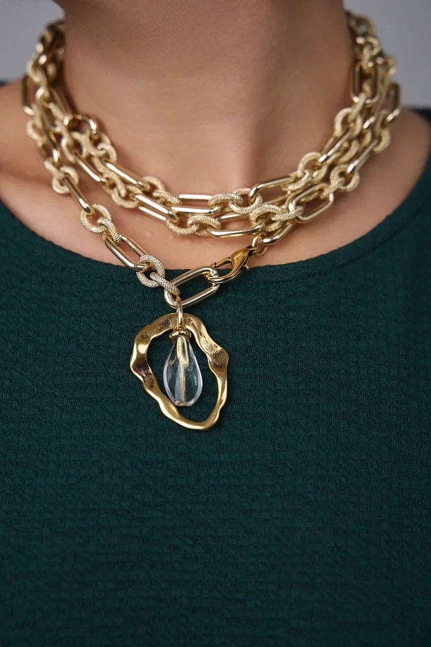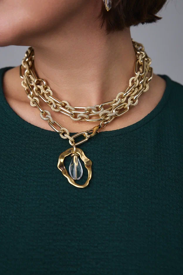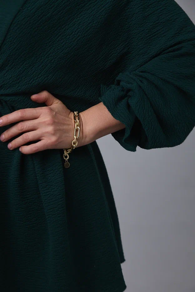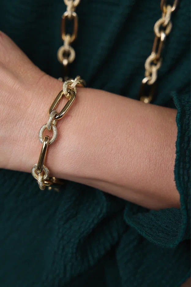 Браслет из гладких и рифленых золотых колечек с горным хрусталем