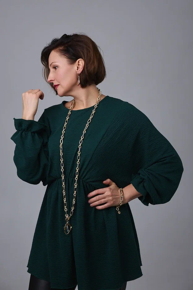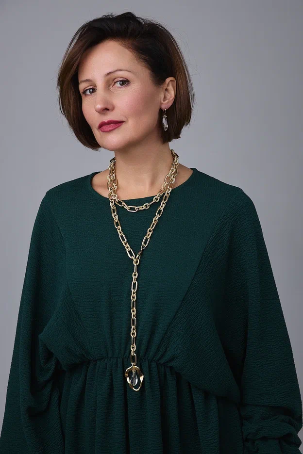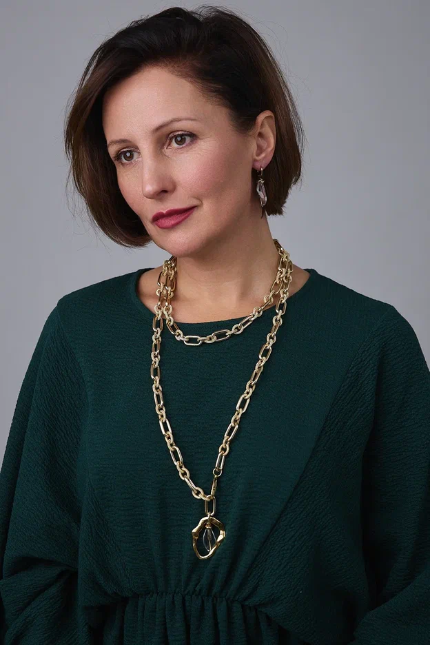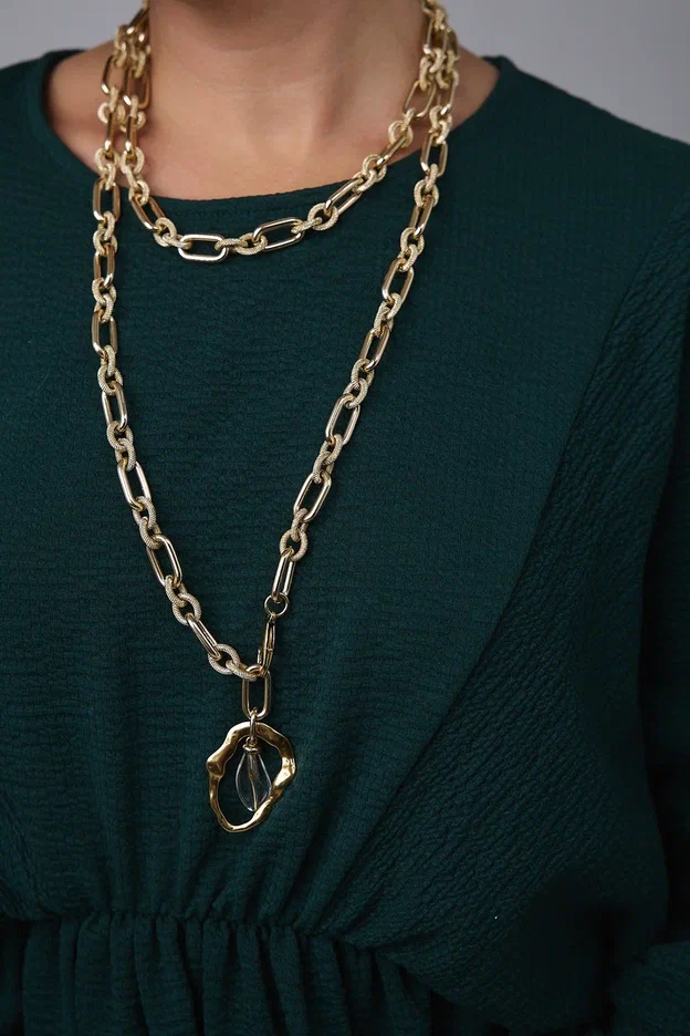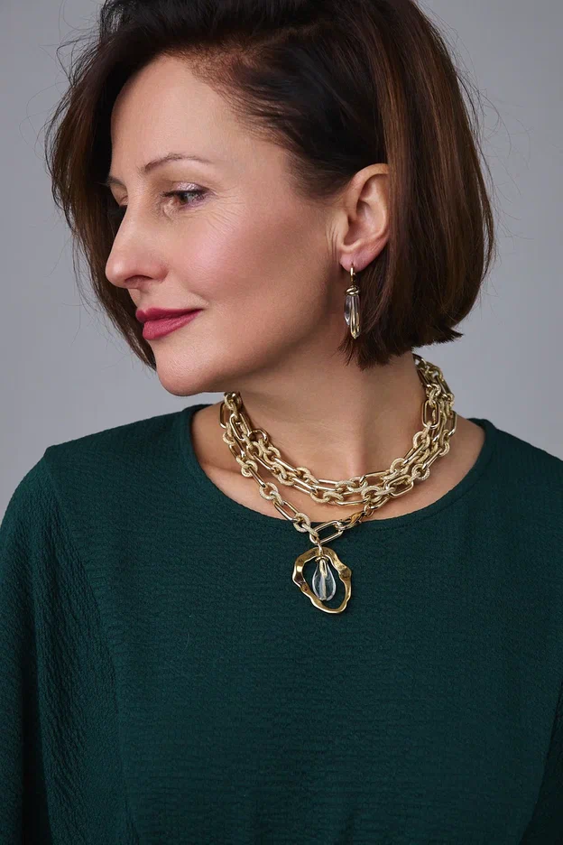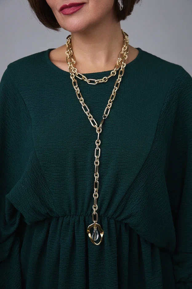 Браслет из гладких и рифленых золотых колечек с горным хрусталем