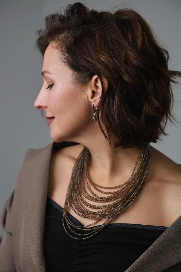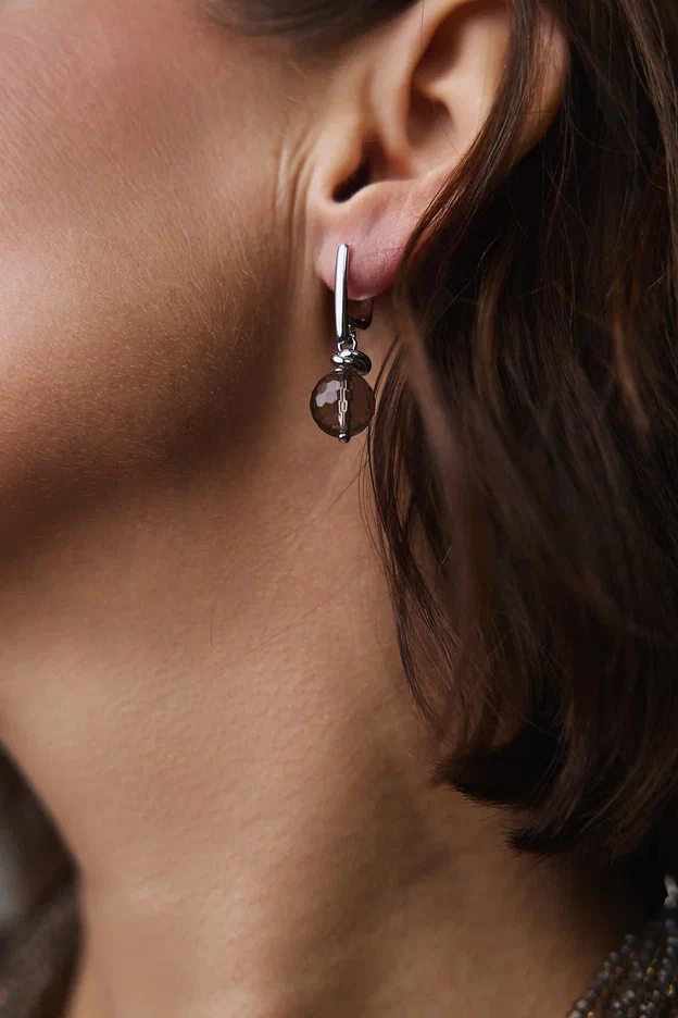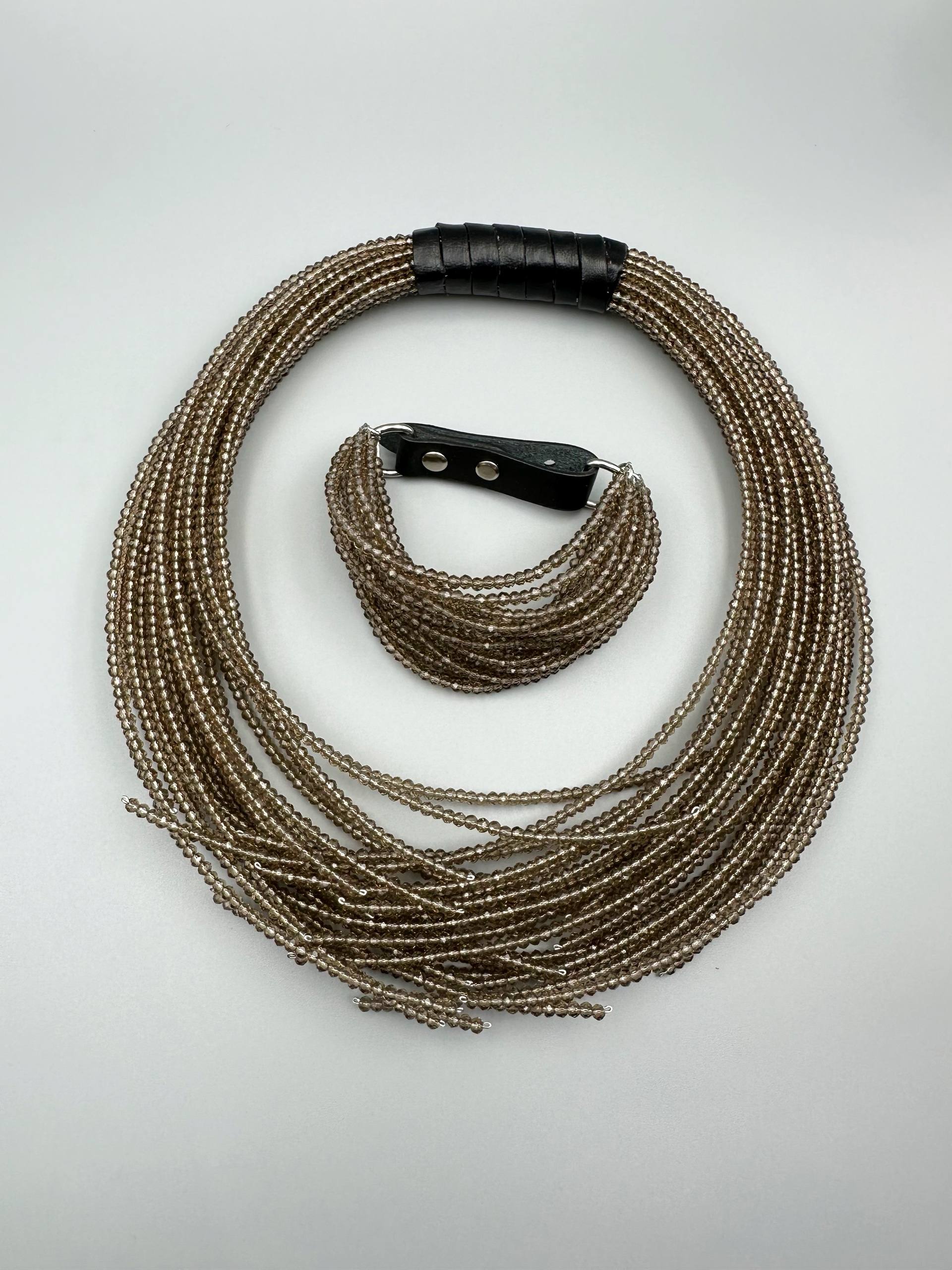 Браслет из венецианского стекла бисерной огранки на кожаной застежке, оттенок раухтопаз. Регулировка длины. Итальянская кожа "растишка".