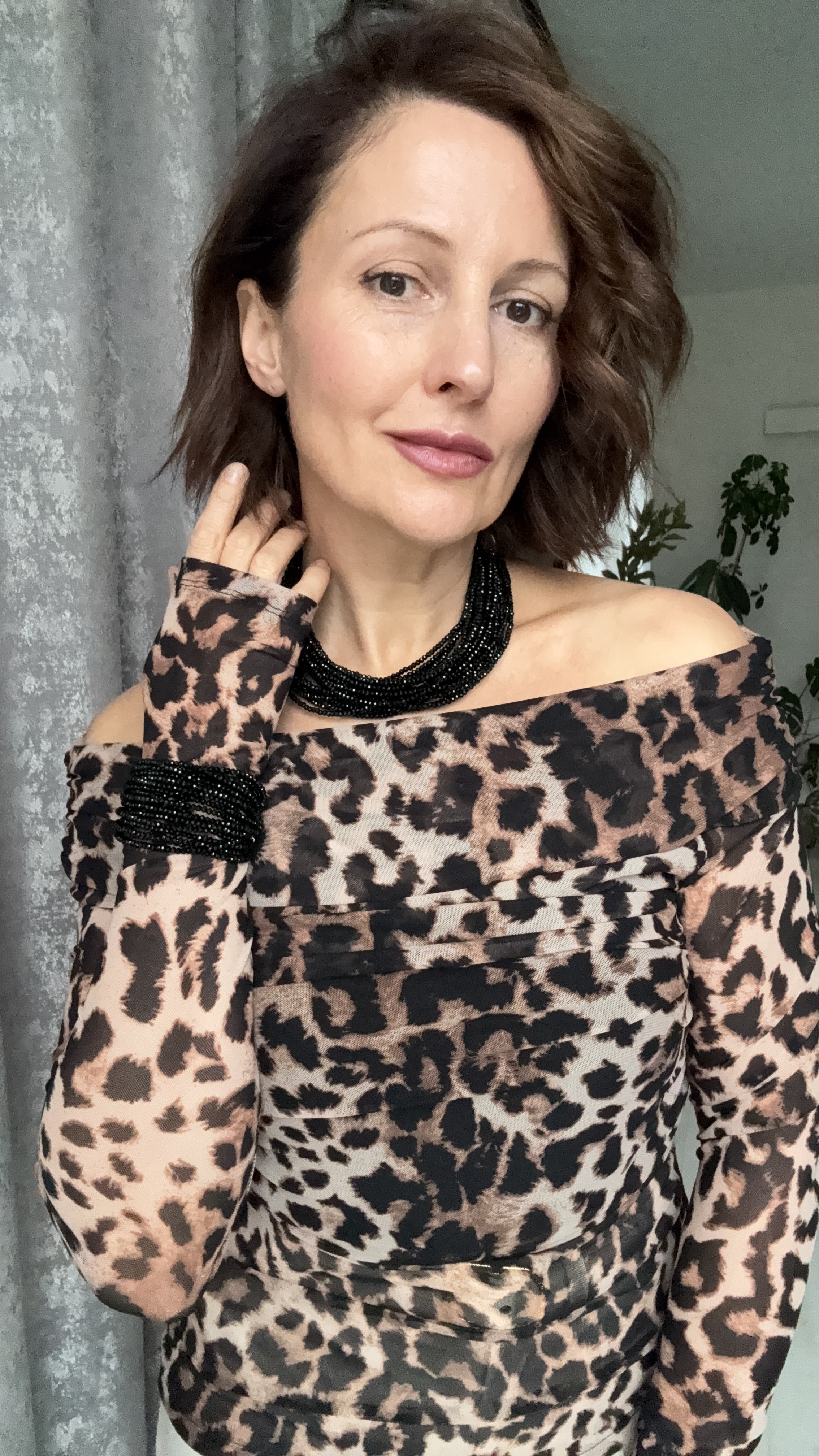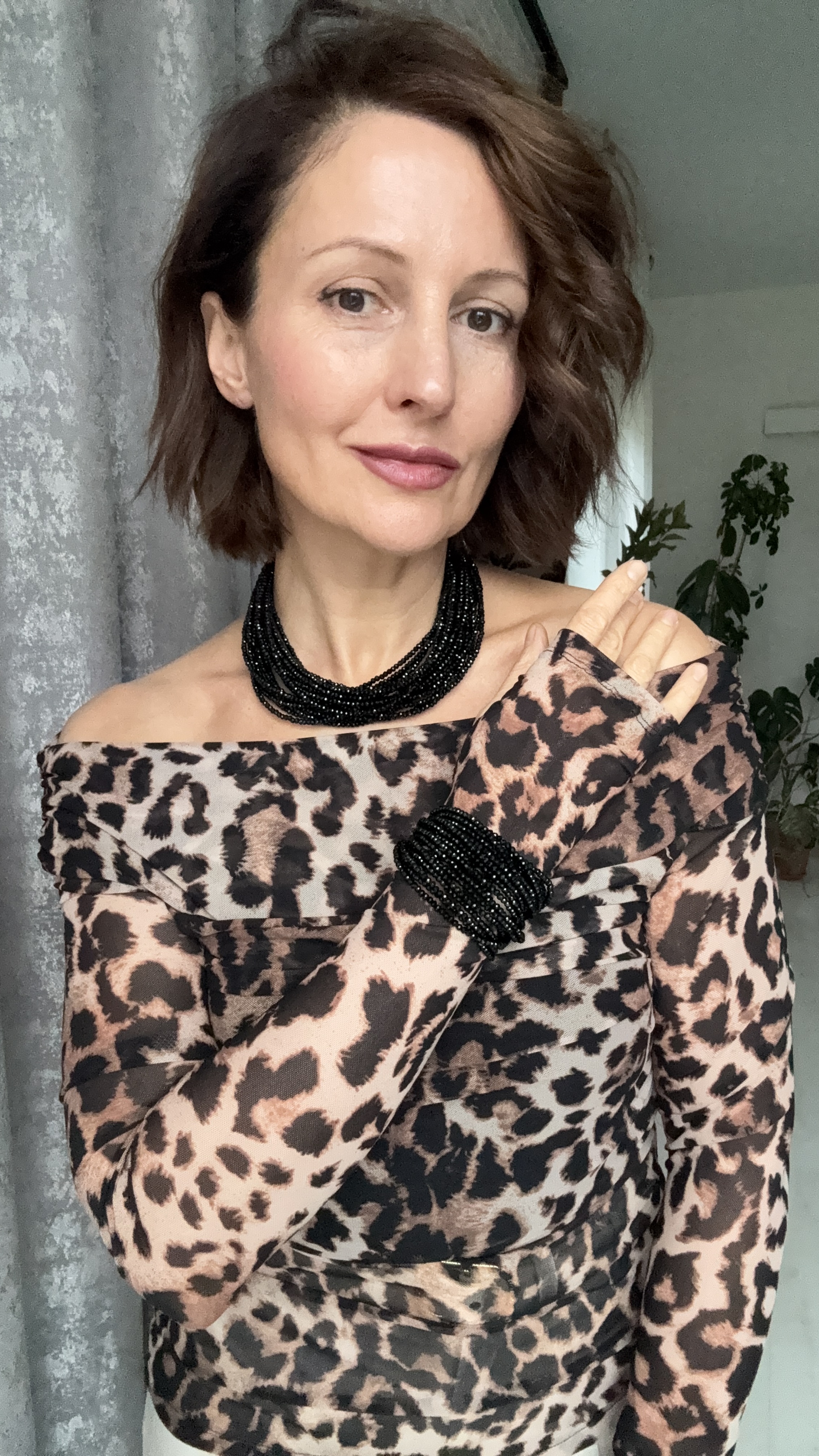 Браслет "Венеция" из черного венецианского стекла на кожаной застежке.