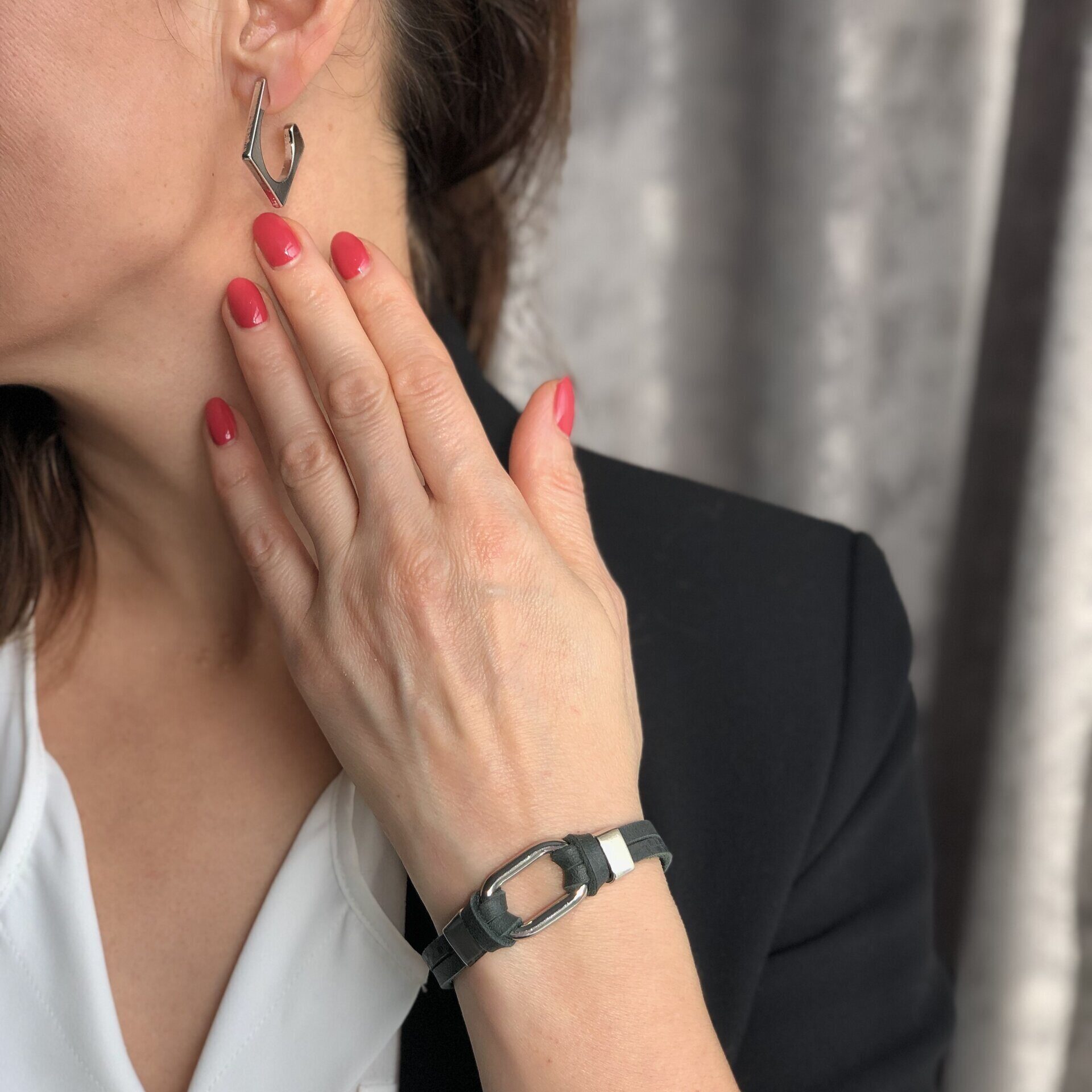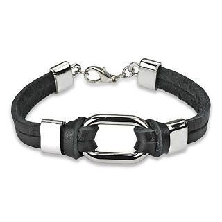Браслет из натуральной кожи и стали марки 316L. Застежка карабин.