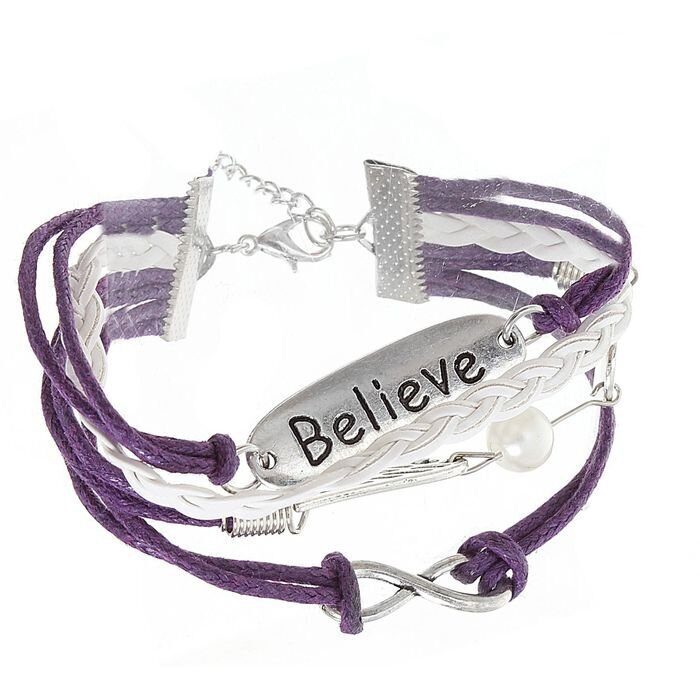 Браслет из экокожи с серебряными вставками. Застежка карабин. Регулировка длины.