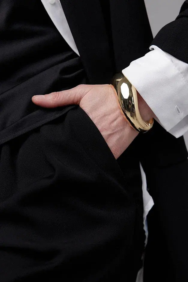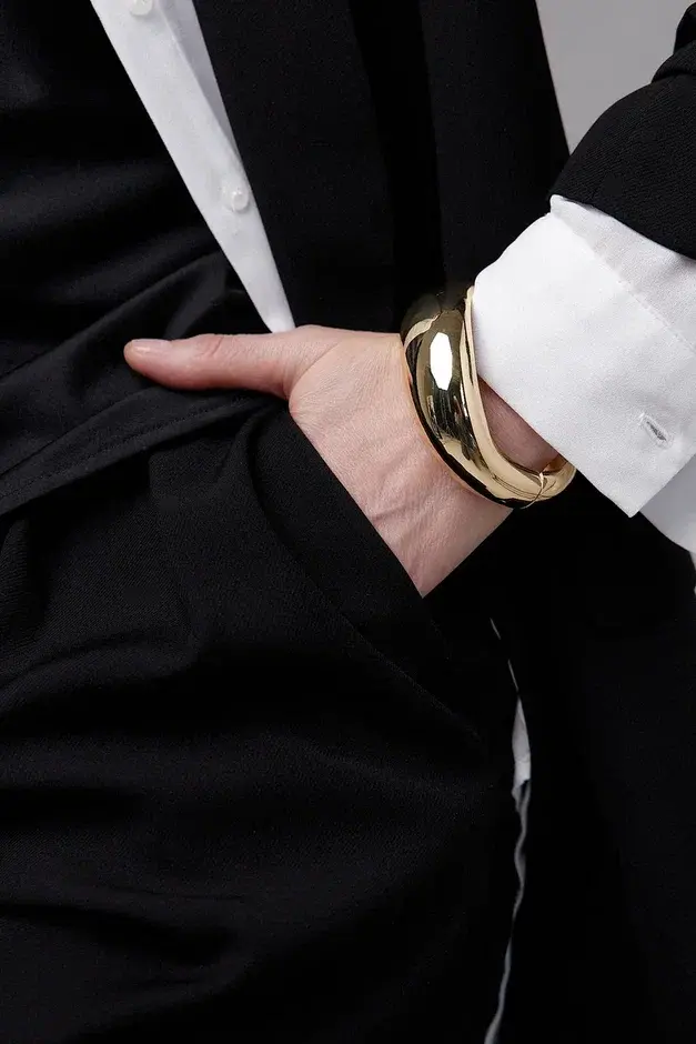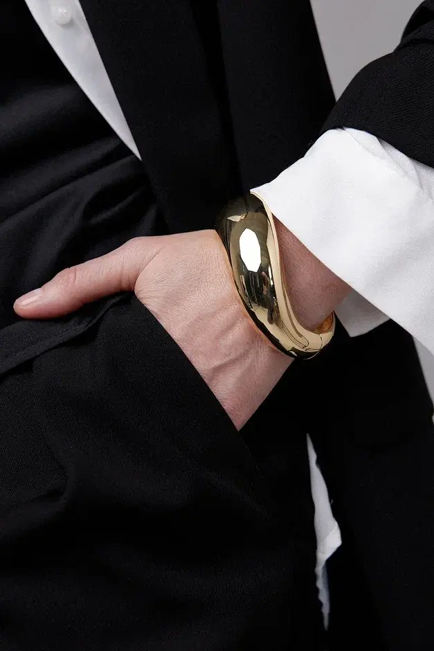 Браслет Le Form жесткий, разъемный, гладкий в форме волны, оттенок золото. Можно носить по два в качестве парных браслетов. Размер 18-19.