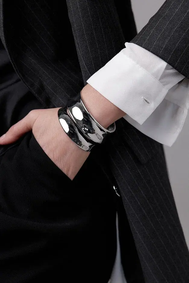 Браслет Le Form жесткий, разъемный, широкий 4 см, из двух полос, оттенок серебро. Размер 15-16.
