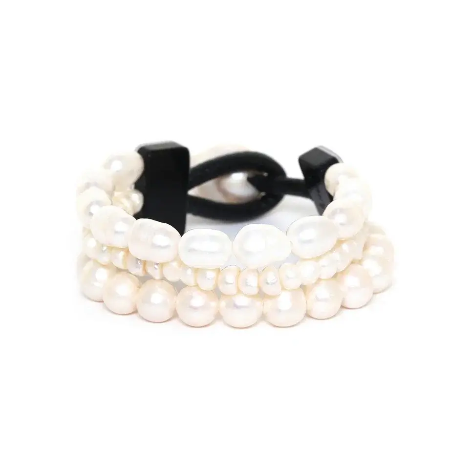 Браслет с ракушкой Capiz в смоле, кожей и жемчугом. Размер 16-18.