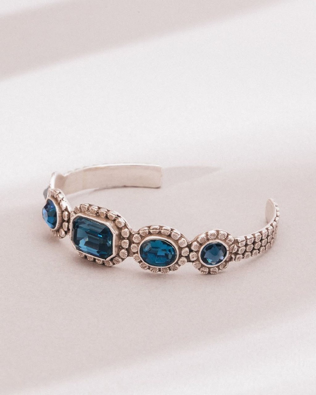 Браслет выполнен в стиле кафф. Обладает открытой формой и легко надевается на запястье.