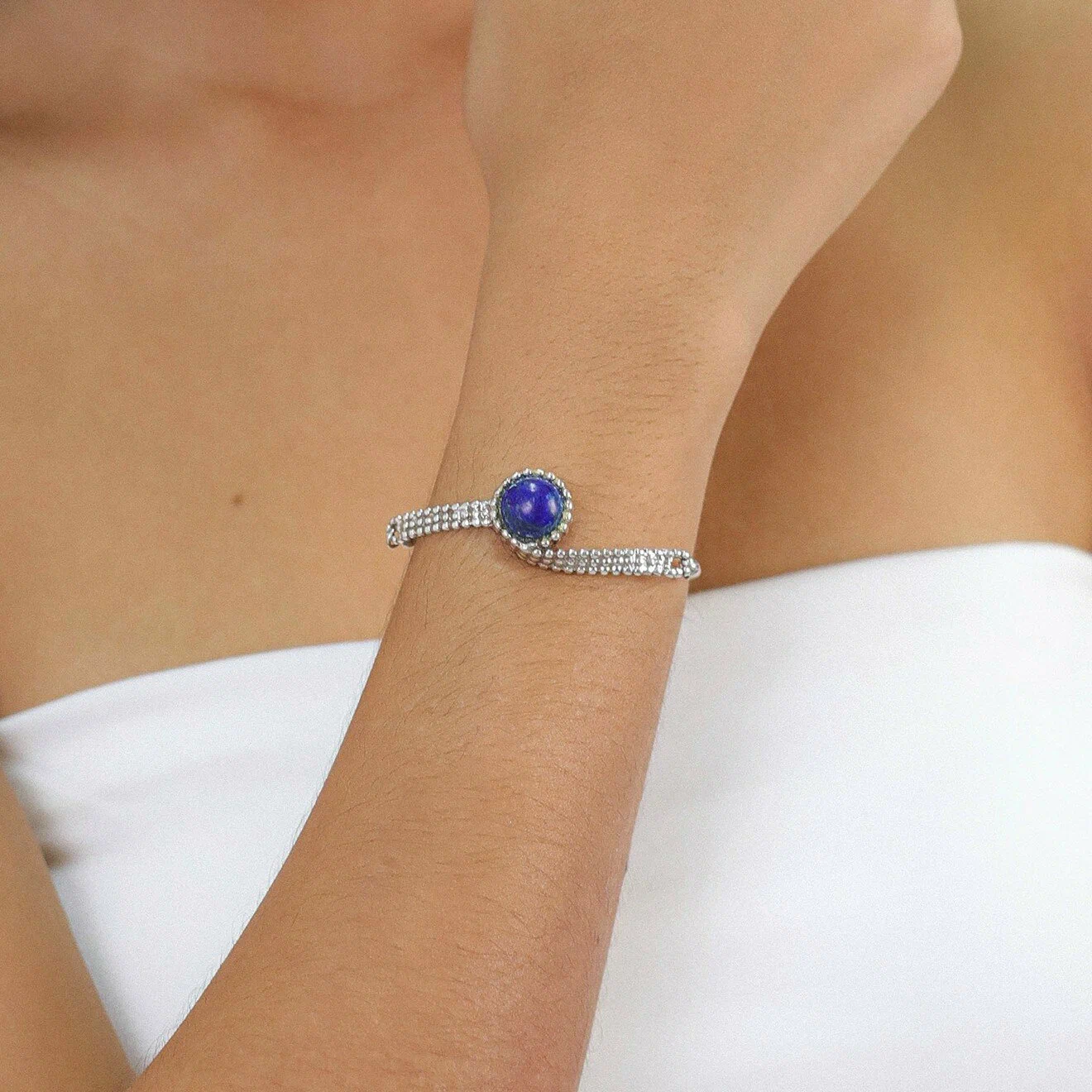 Серебряное обрамление подчеркивает глубину насыщенного лазурита.