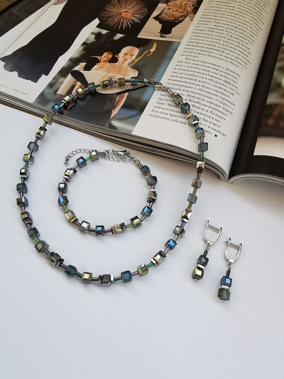 Браслет с кубиками в стилистике Coeur de Lion, оттенок радужный. Регулировка длины.