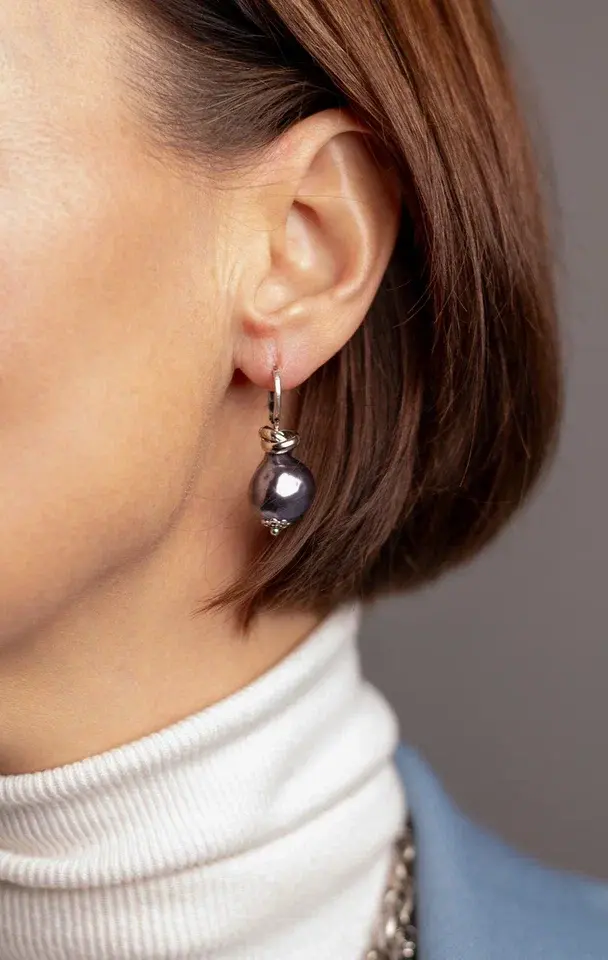 Браслет с темными барочными жемчужинами и подвесами. Оттенок серебро. Регулировка длины.