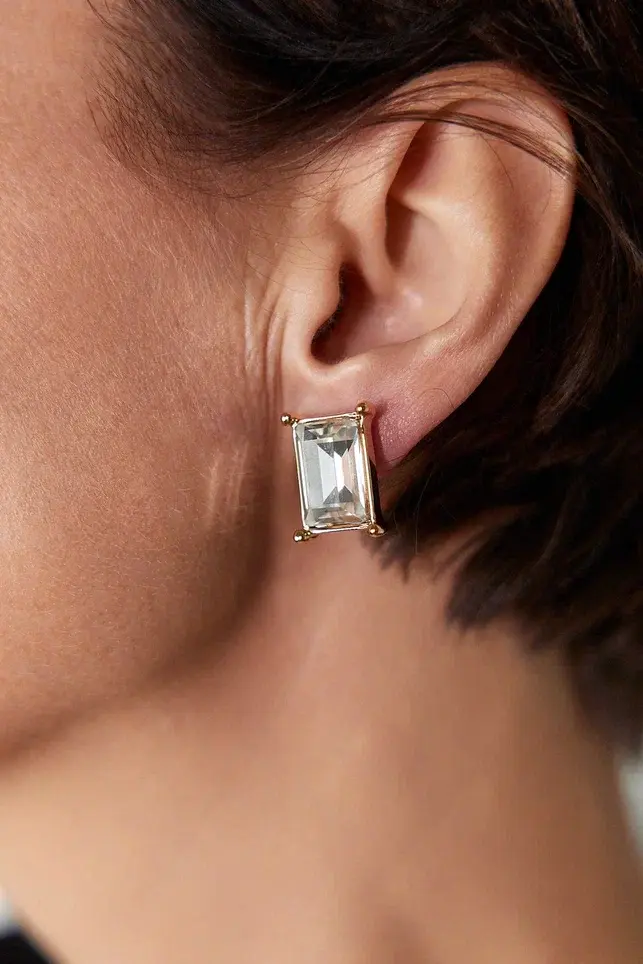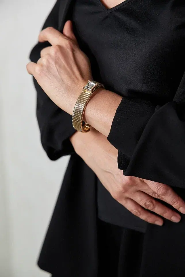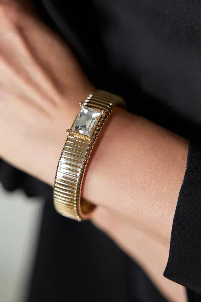 Браслет широкий плоский с прозрачным прямоугольным кристаллом, оттенок серебро. Ширина 1,5 см. Размер 20-21.