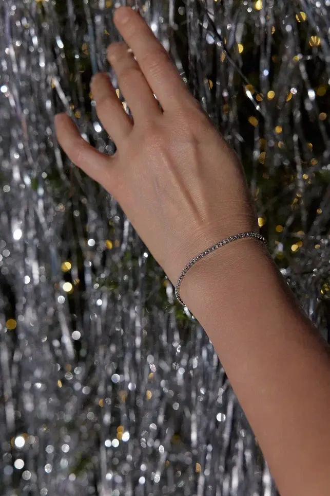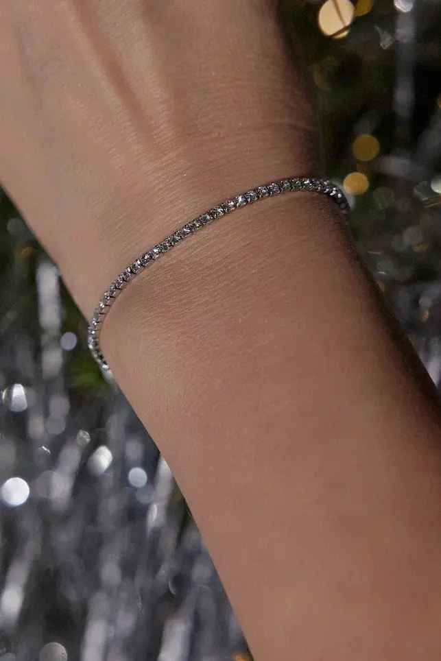 Браслет тонкая линия из прозрачных кристаллов, оттенок серебро