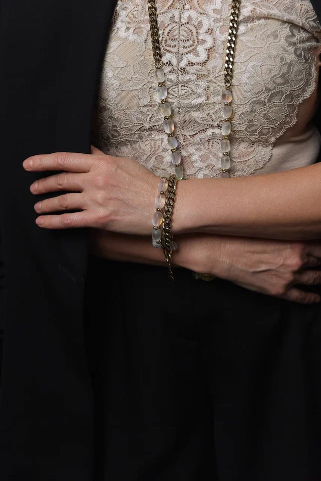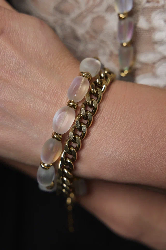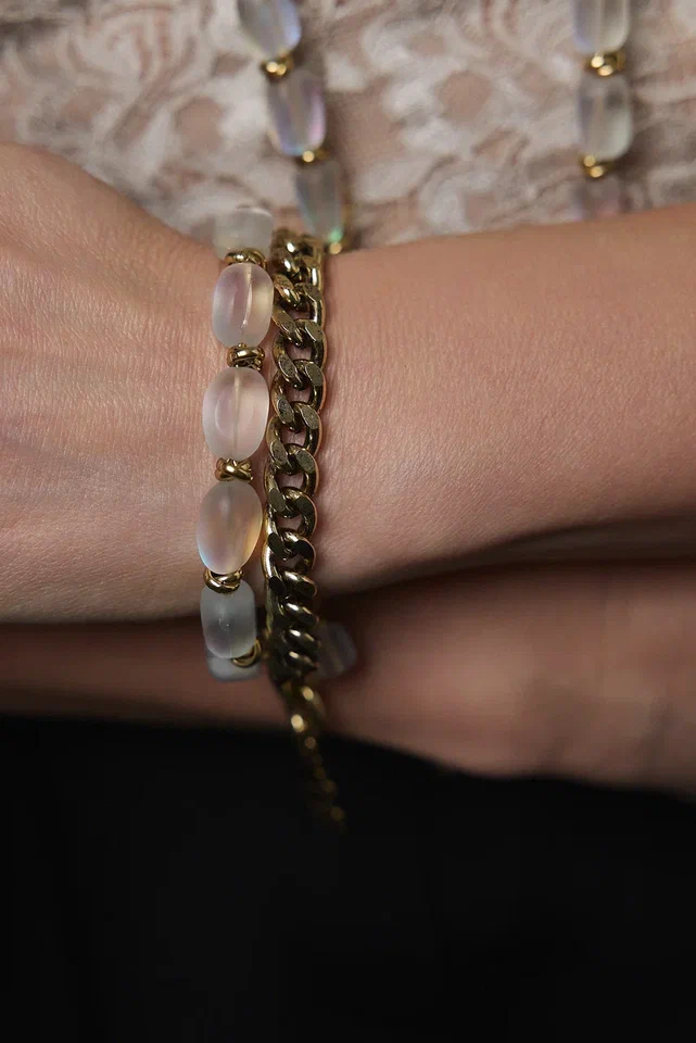 Браслет цепи и опалы, оттенок золото
