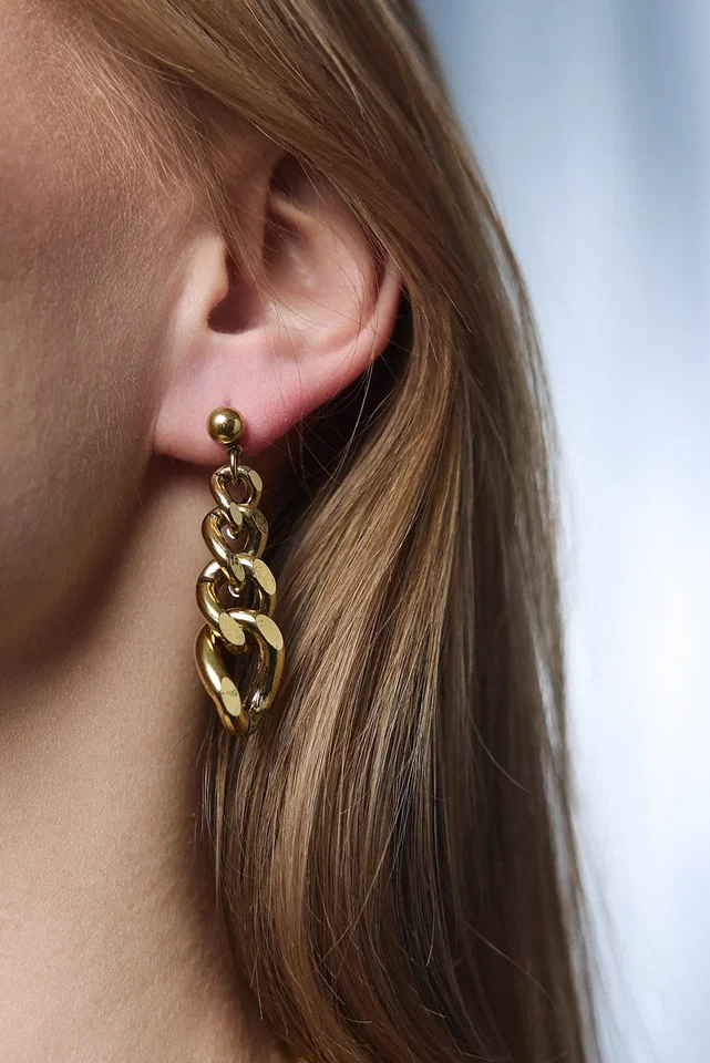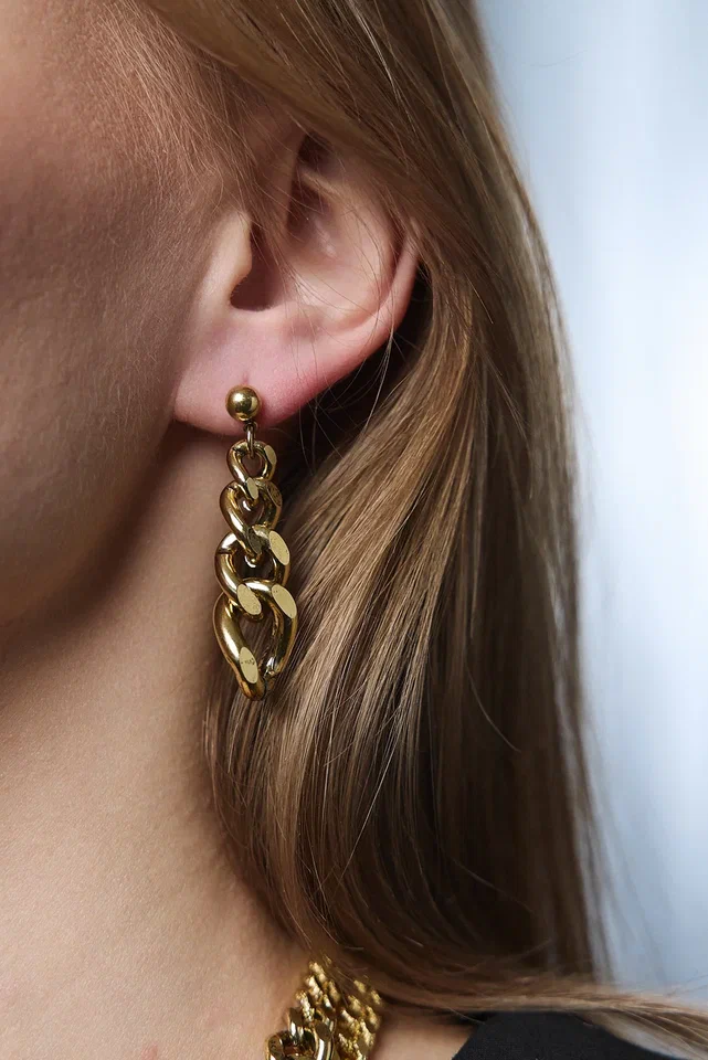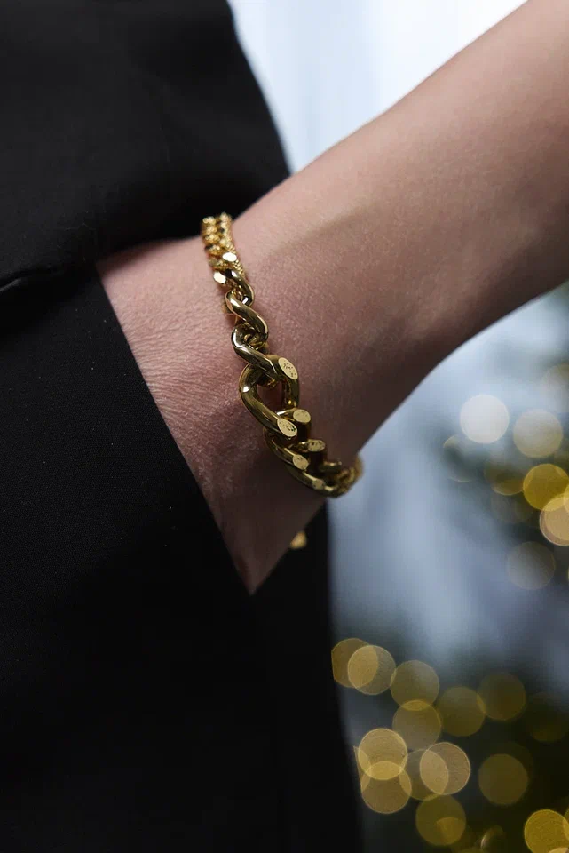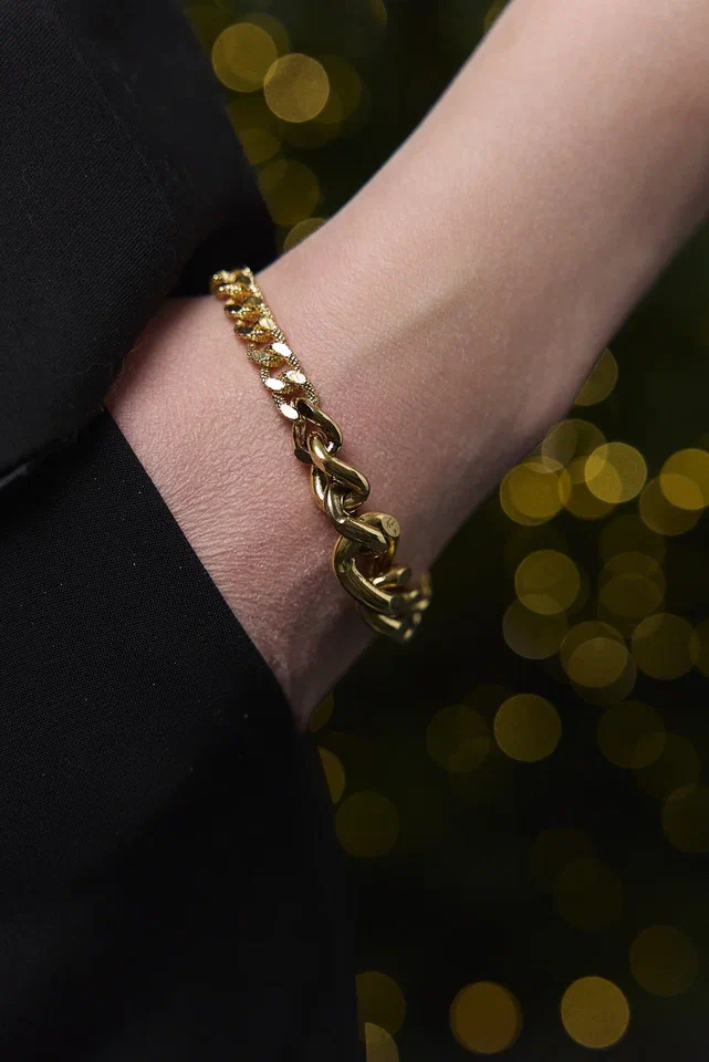 Браслет цепи плоские из разных звеньев, оттенок золото