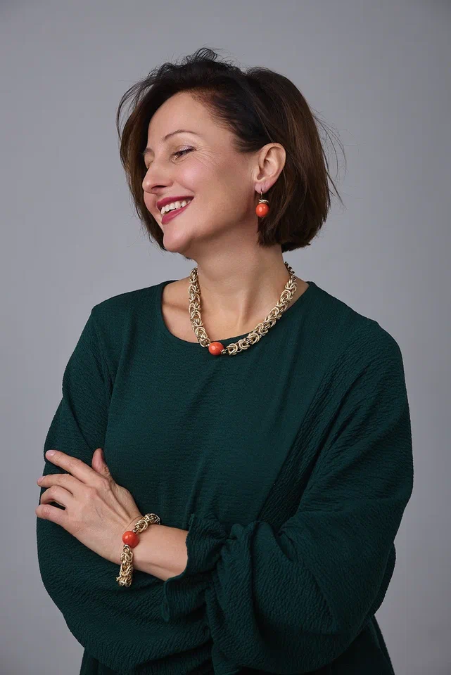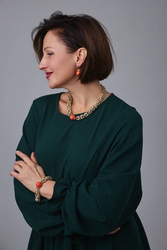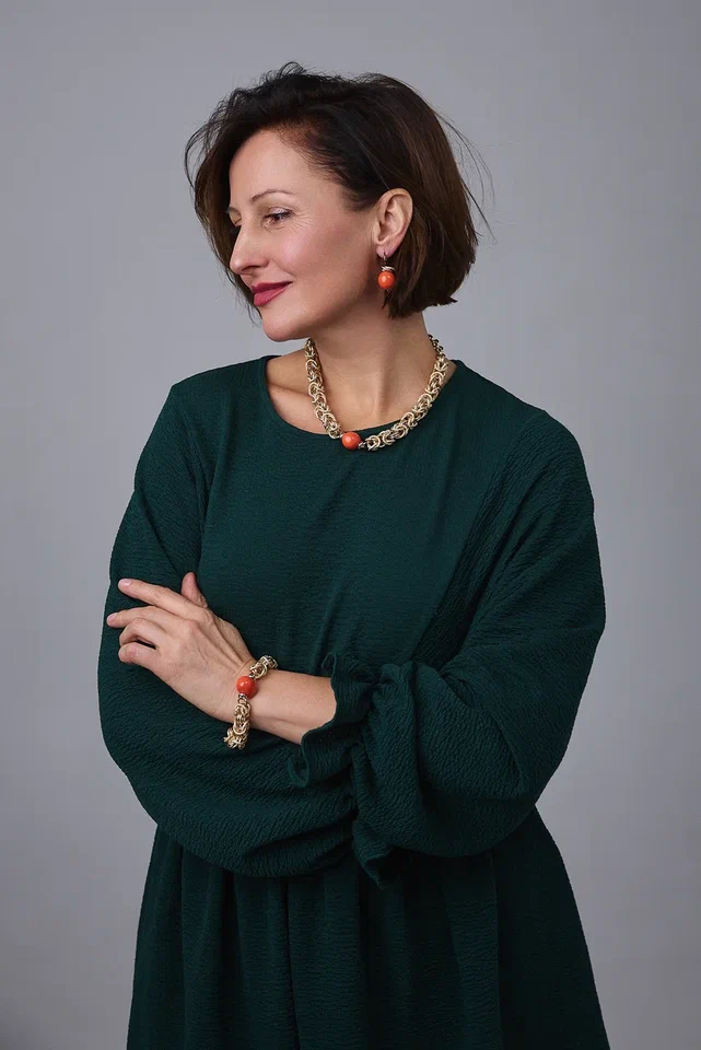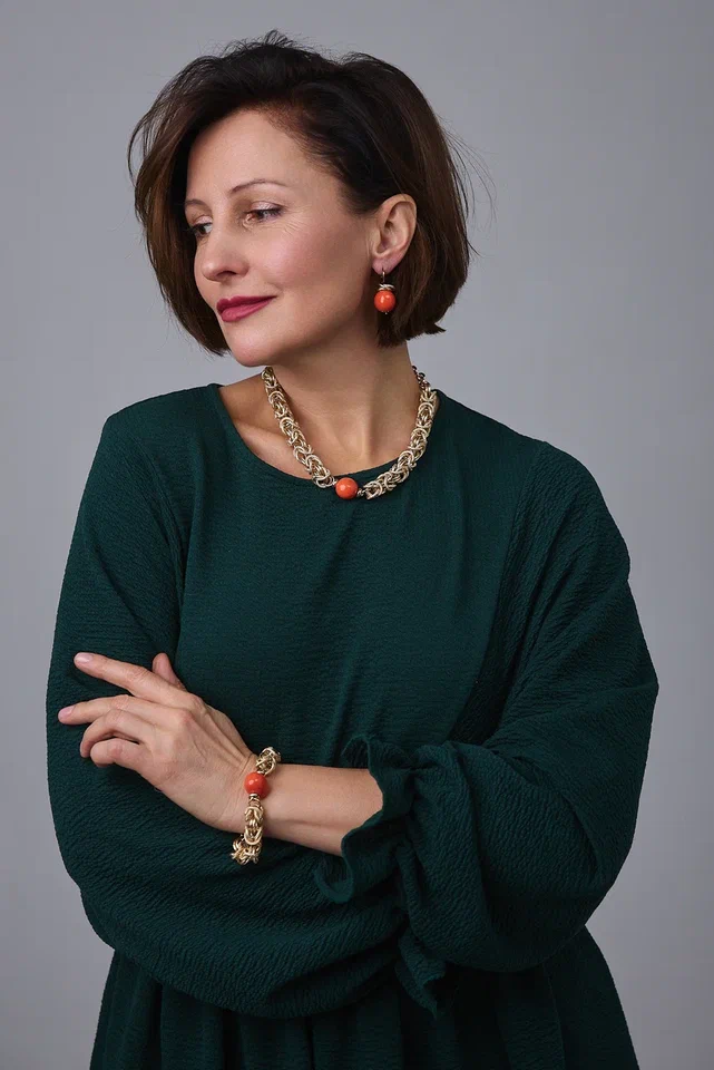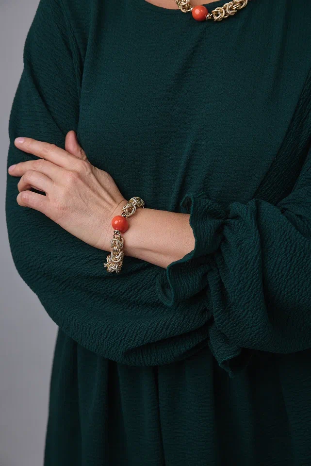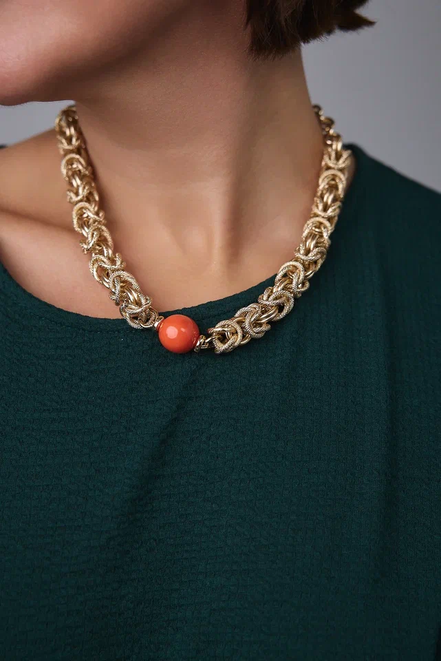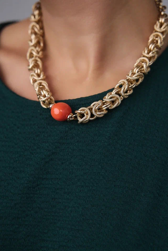 Браслет "Византия" с коралловым жемчугом Майорка, оттенок золото. Регулировка длины.