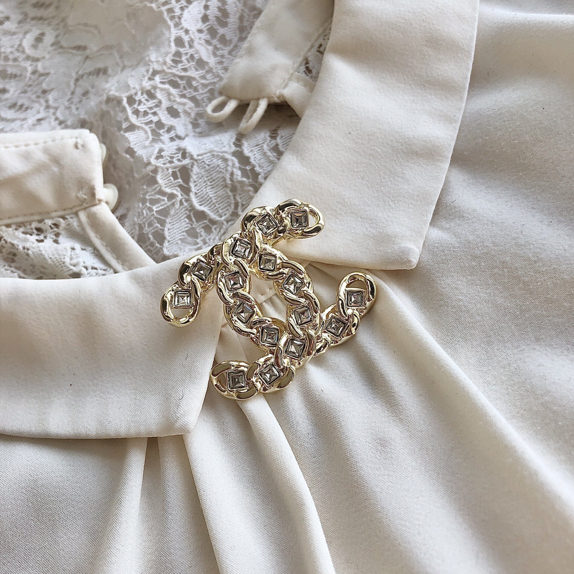 Брошь с прозрачными кристаллами.