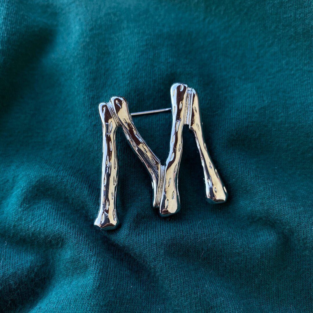 Брошь буква М из бижутерного сплава.