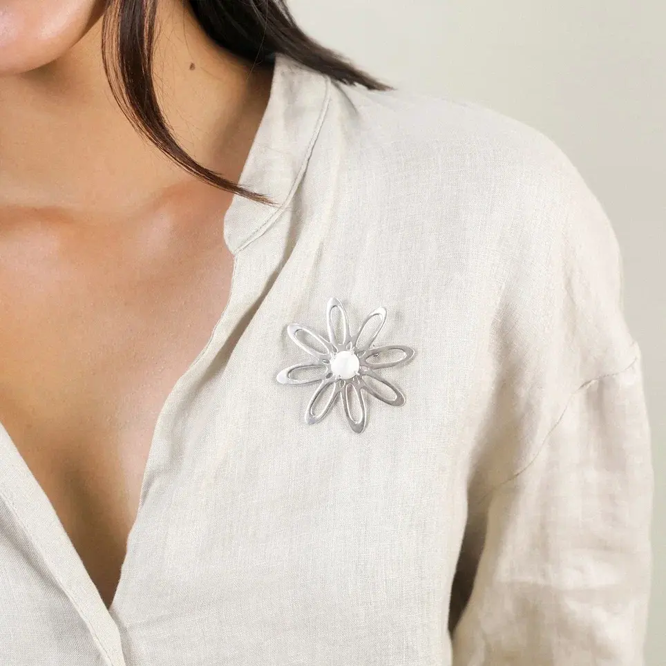 Брошь ORI TAO, Bloom, в форме цветка с перламутром, OT25.2-10-26251 (серебристый).