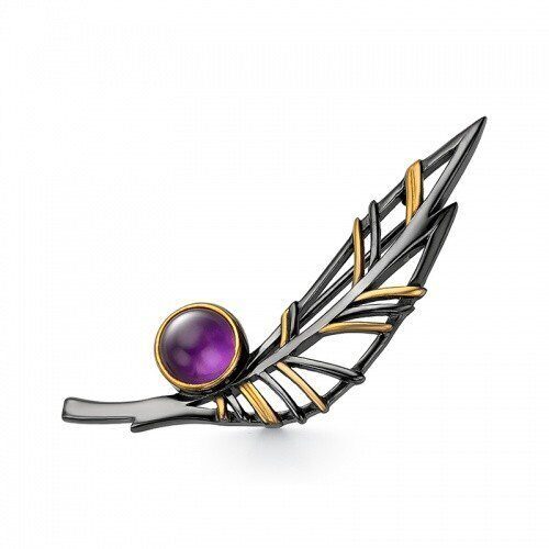 Брошь перо с аметистом. Серебро 925.