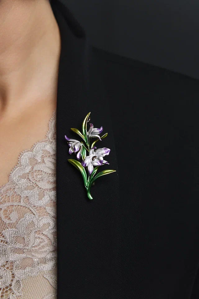 Брошь-подвеска букет из бело-фиолетовых орхидей