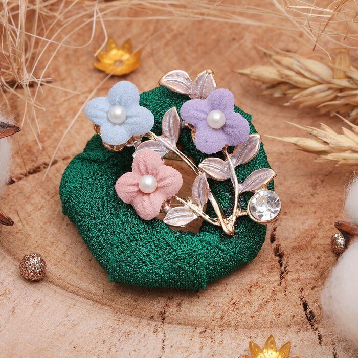 Брошь "Текстильный стиль" веточка на рамке, цвет изумрудный
