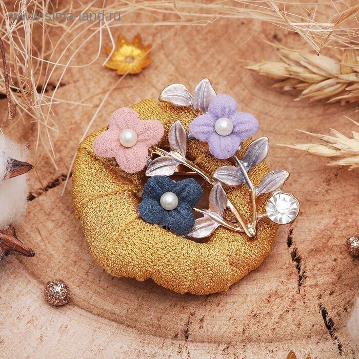 Брошь "Текстильный стиль" веточка на рамке, цвет желтый