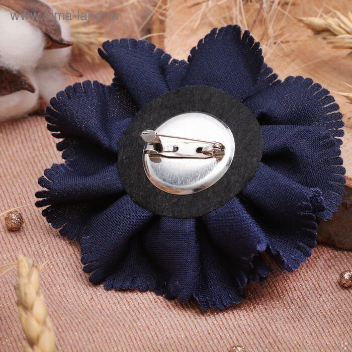 Брошь цветок из текстиля, цвет синий