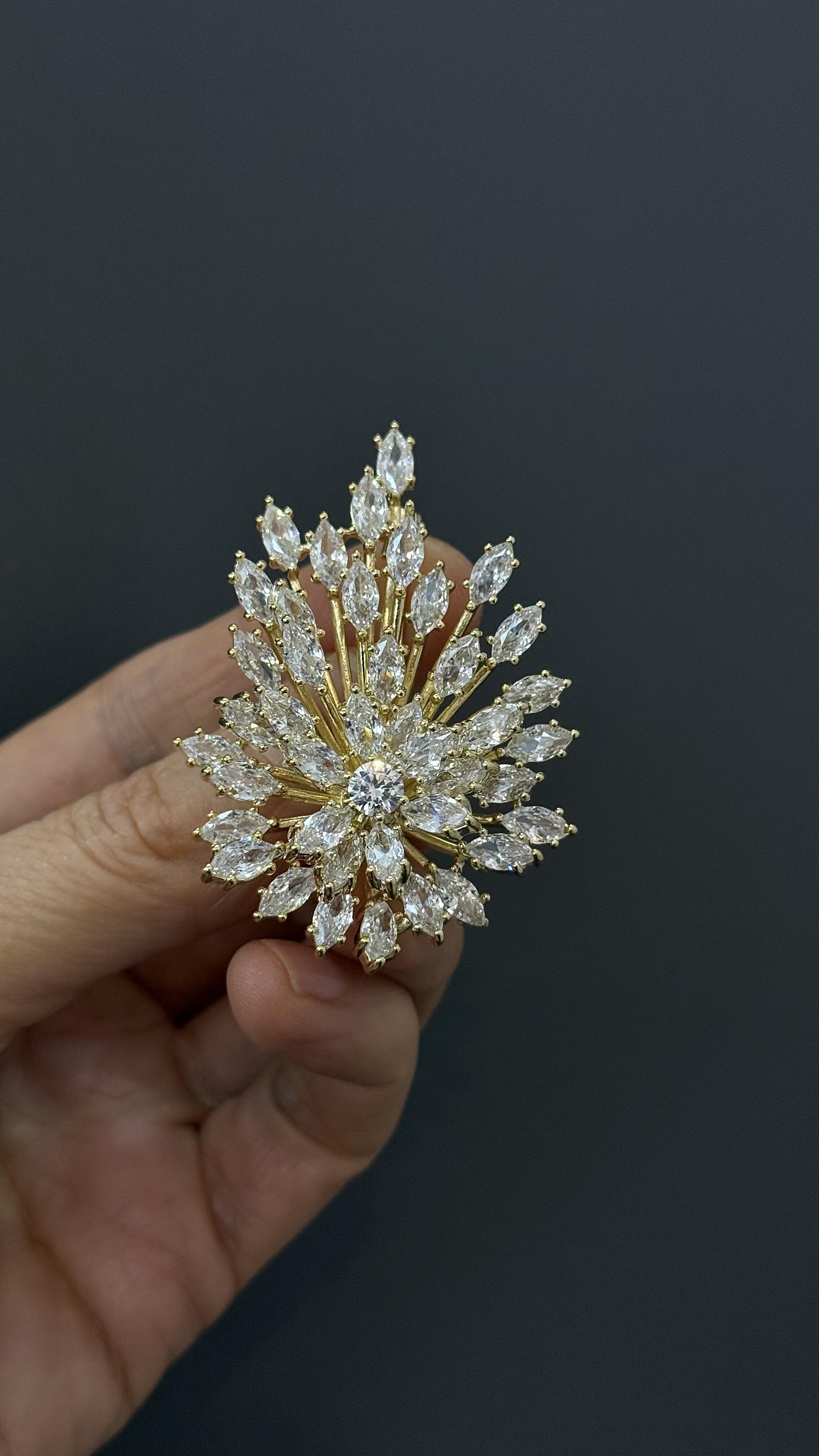 Брошь цветок из цирконов, оттенок золото. Размер 6 х 4,5 см