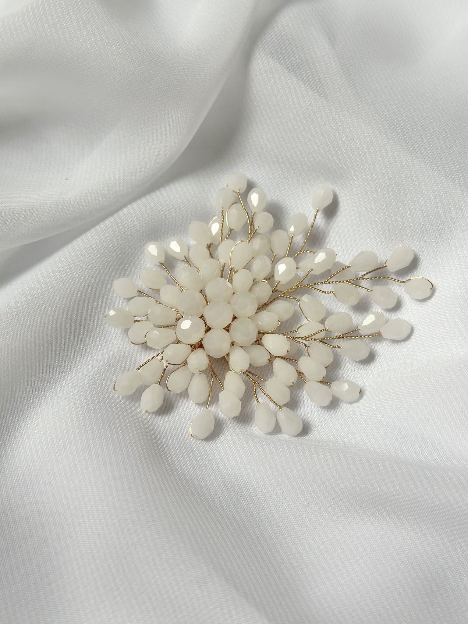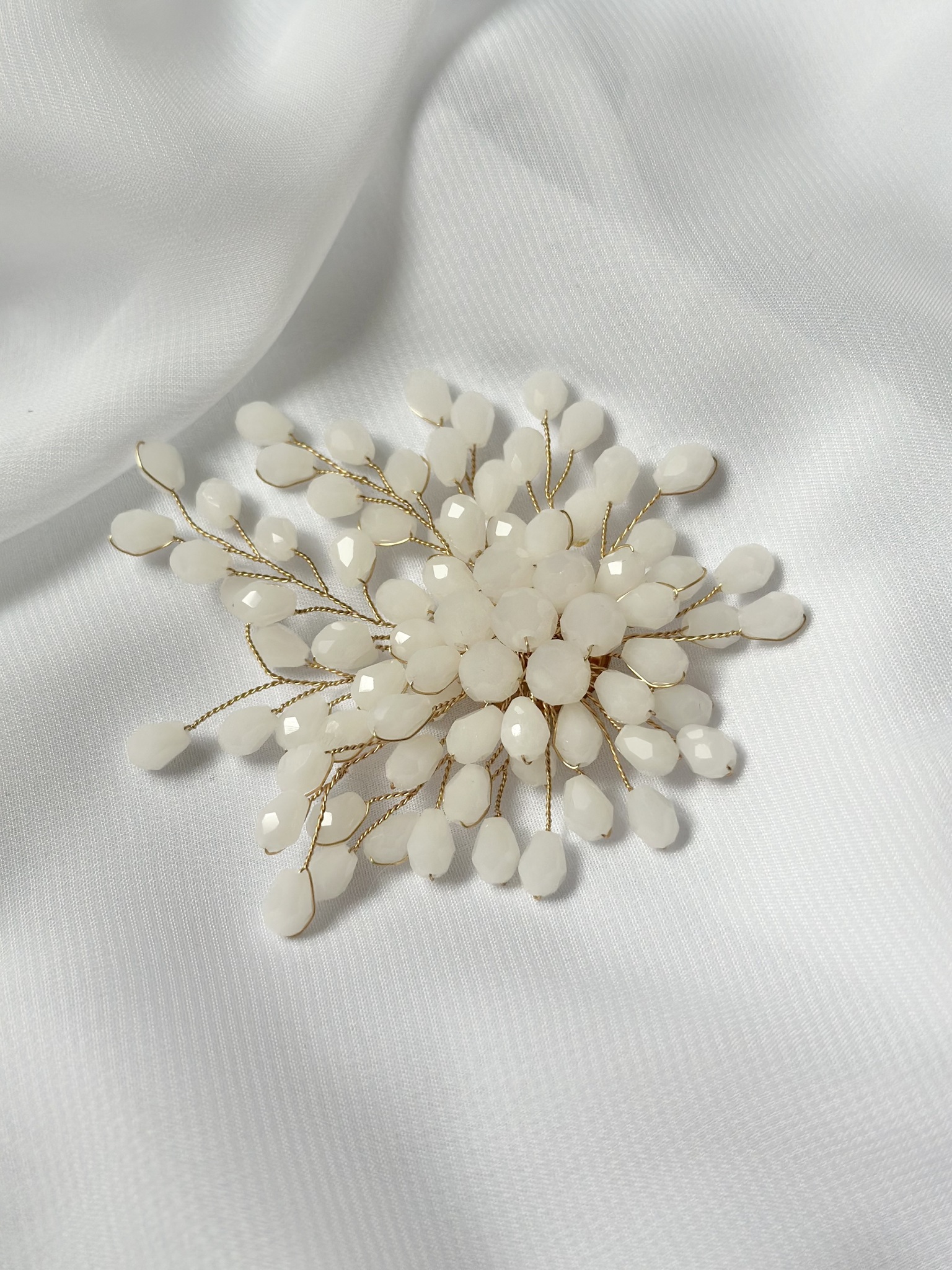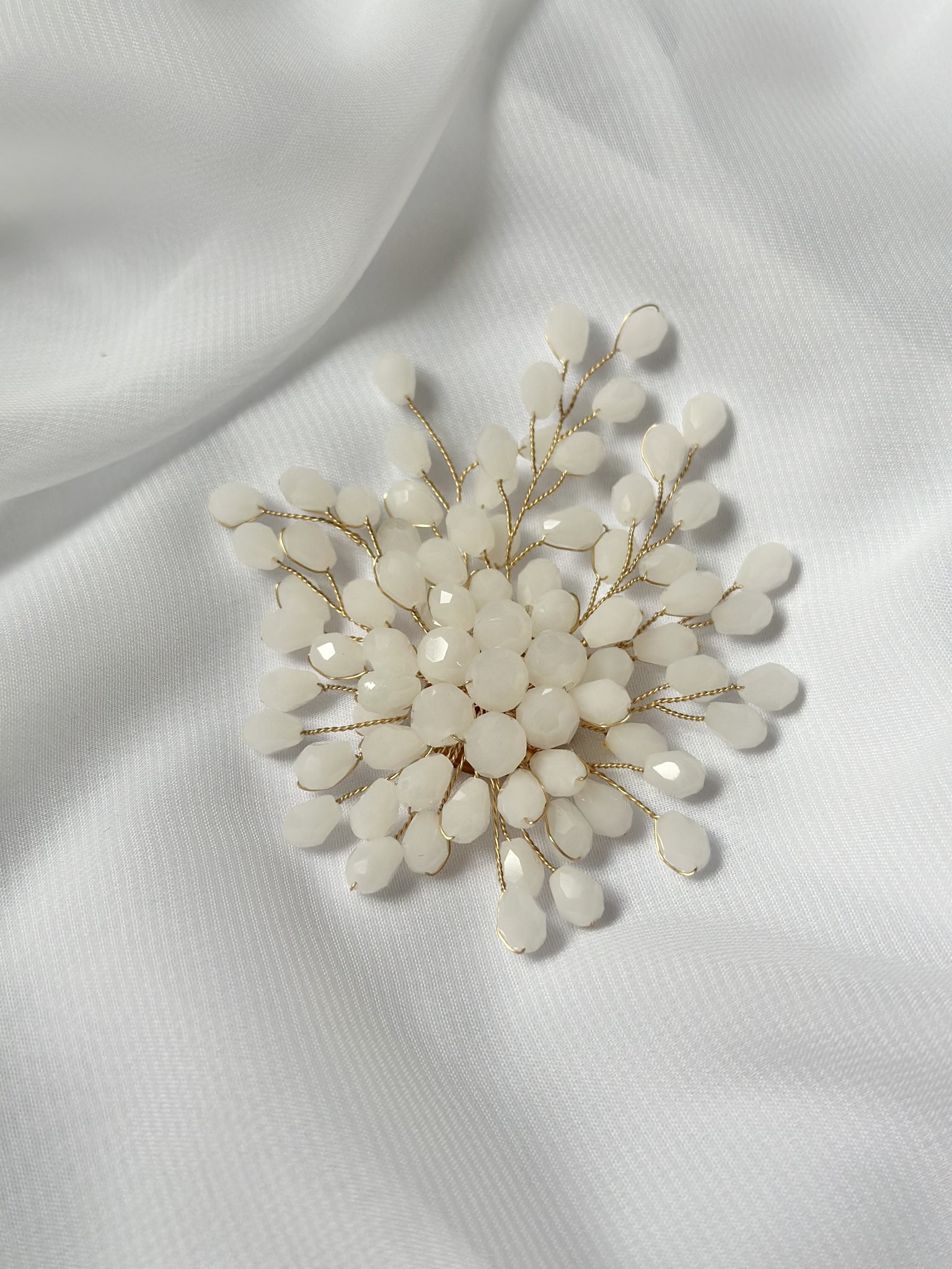 Брошь-цветок, проволока, кристаллы премиум, оттенок белый молочный.