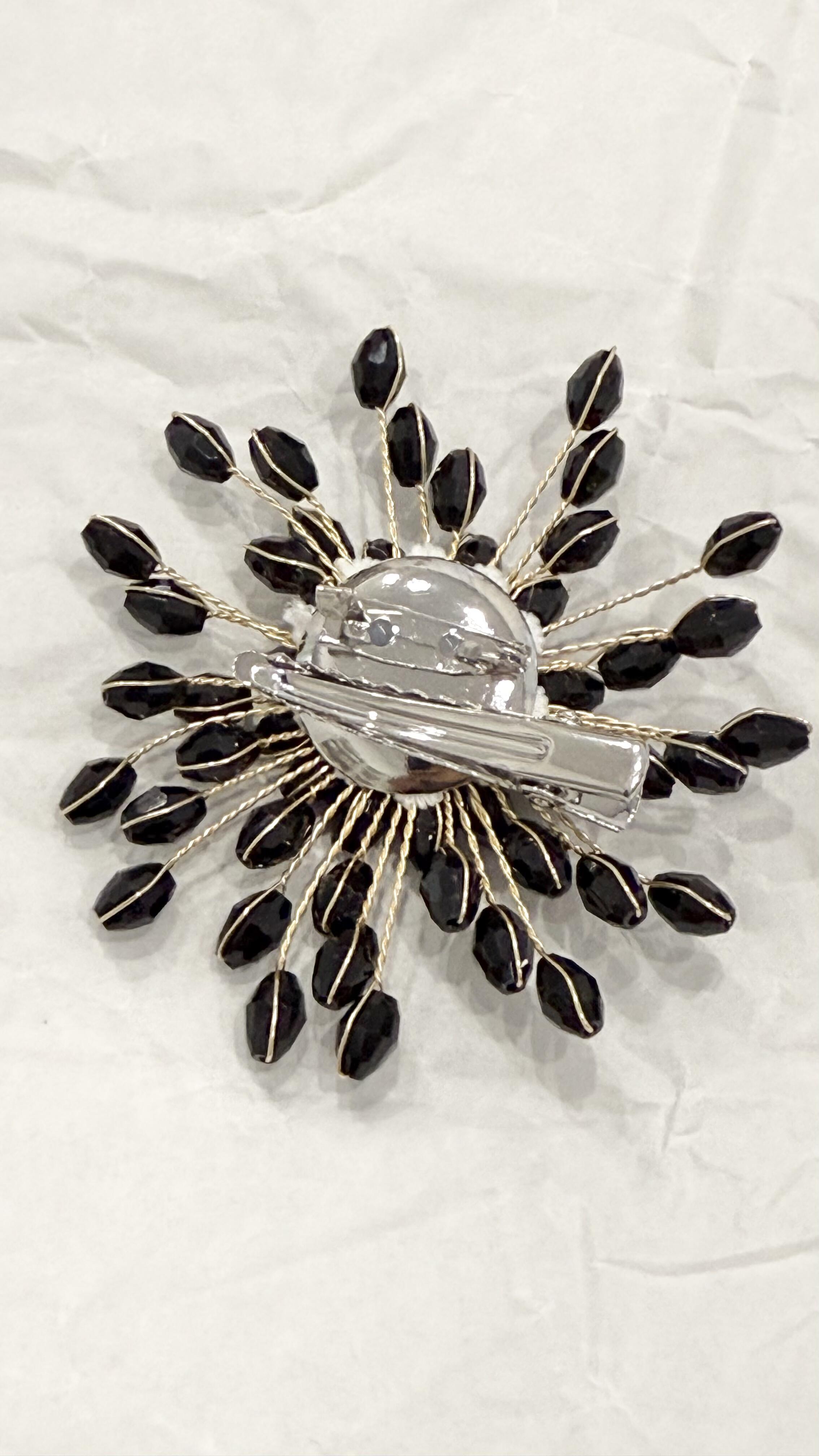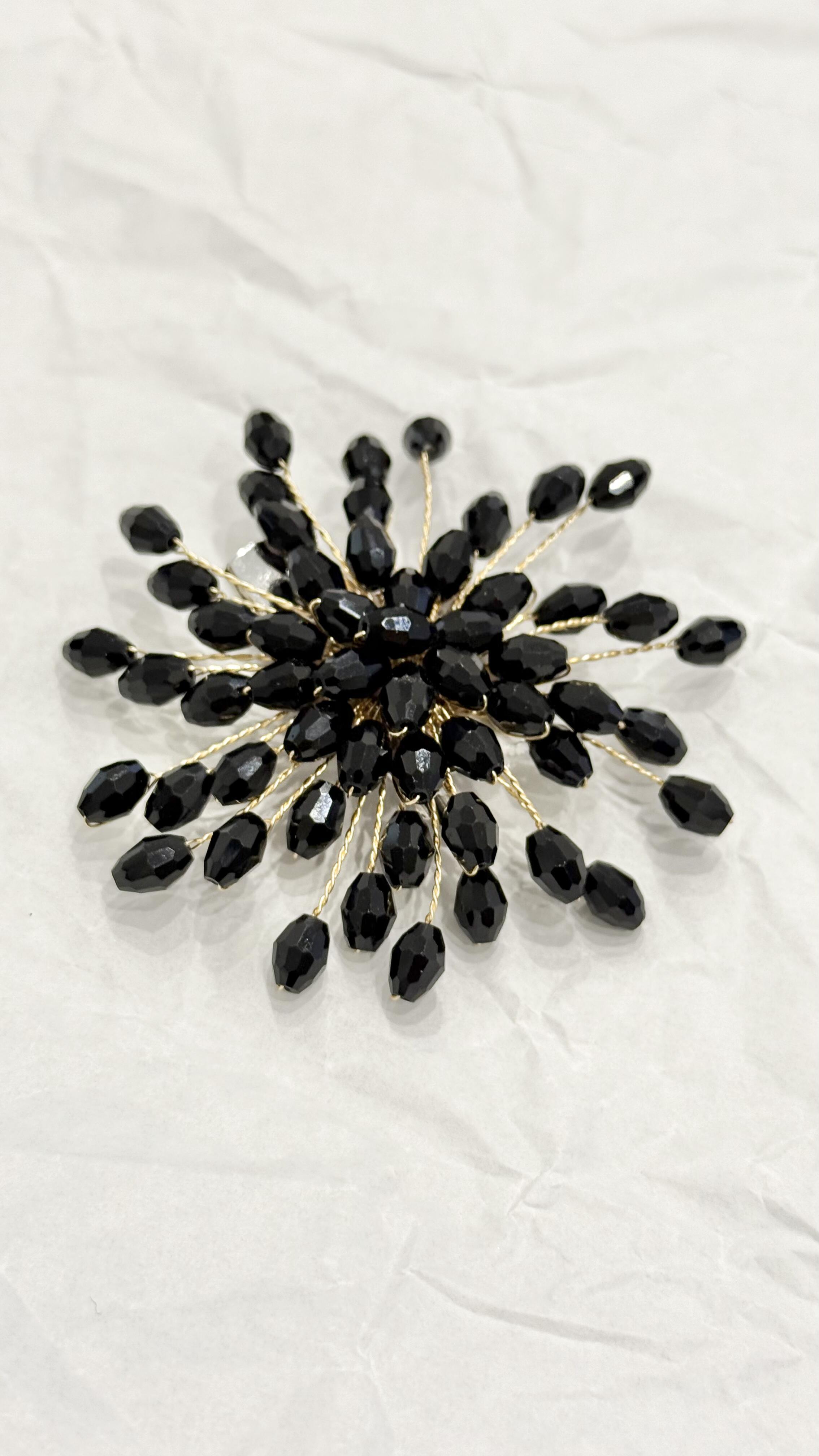 Брошь цветок с зажимом из черных кристаллов