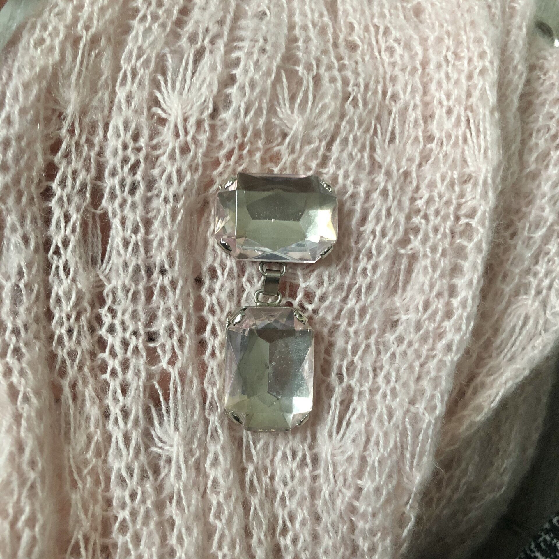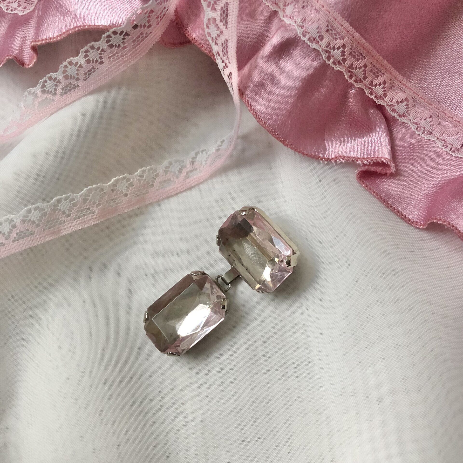 Брошь винтаж багет два бледно-розовых кристаллов, Италия.