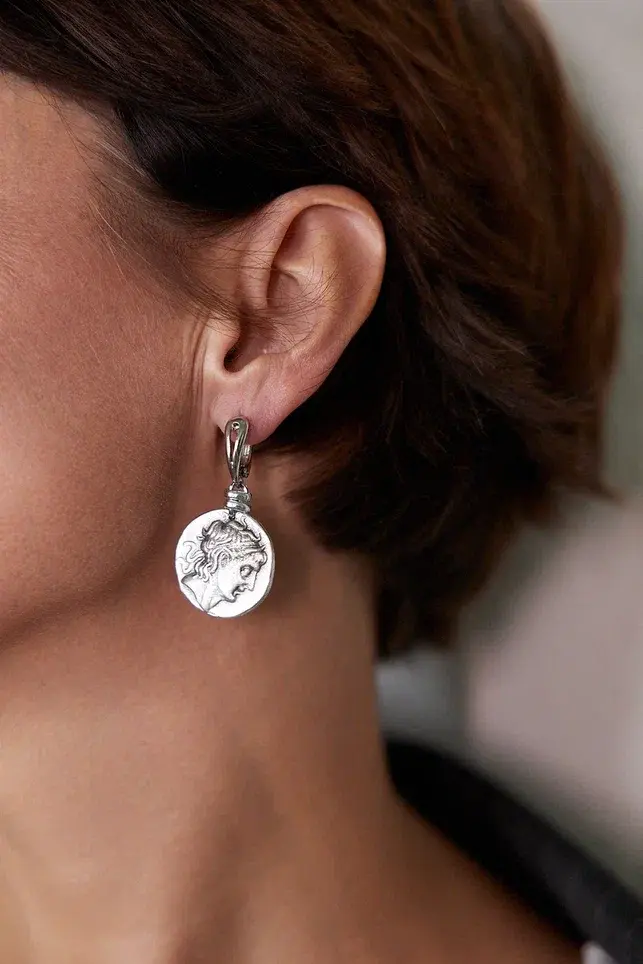 Серьги с монетами. Длина - 4 см. Замок английский. Оттенок серебро.