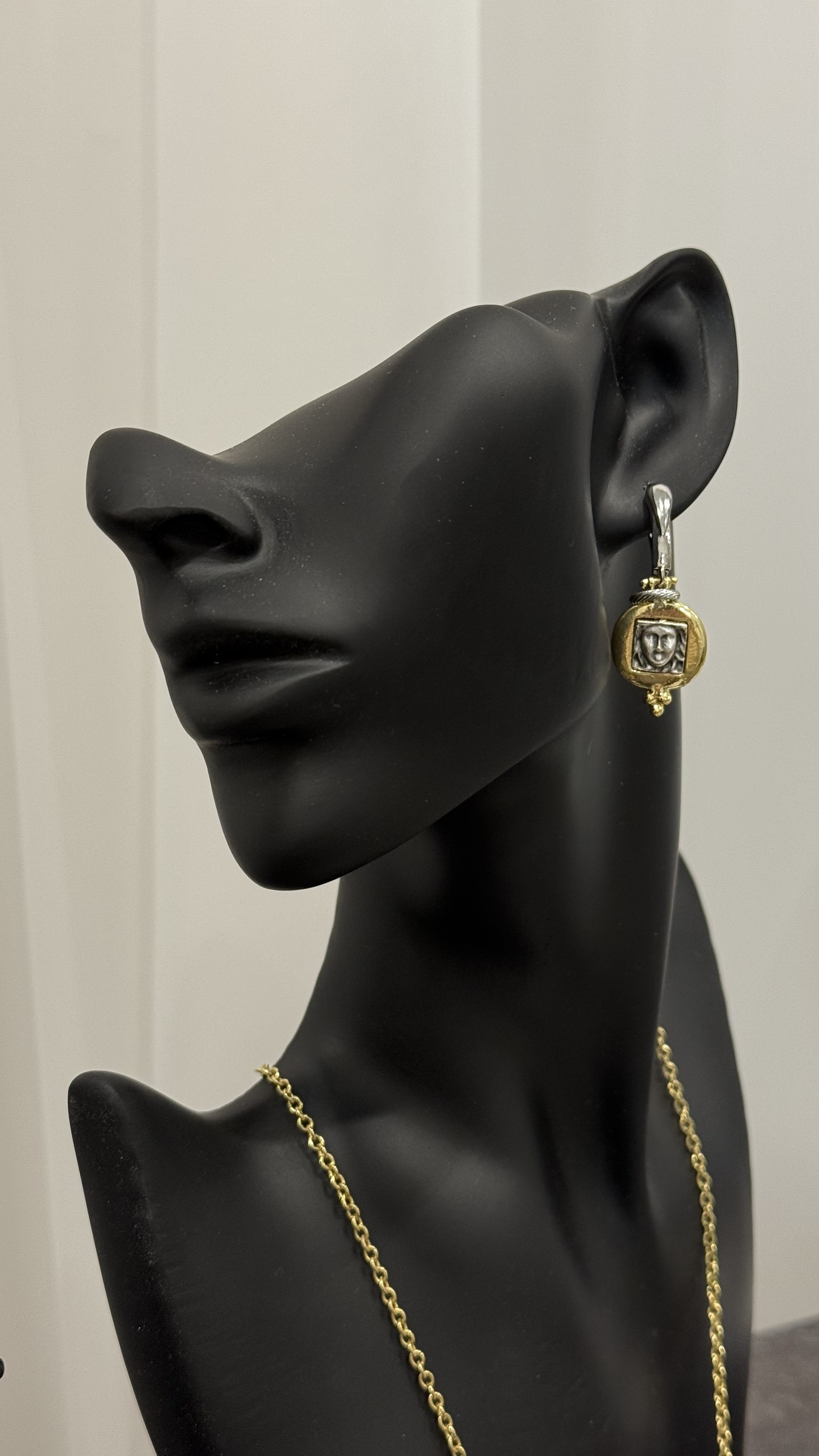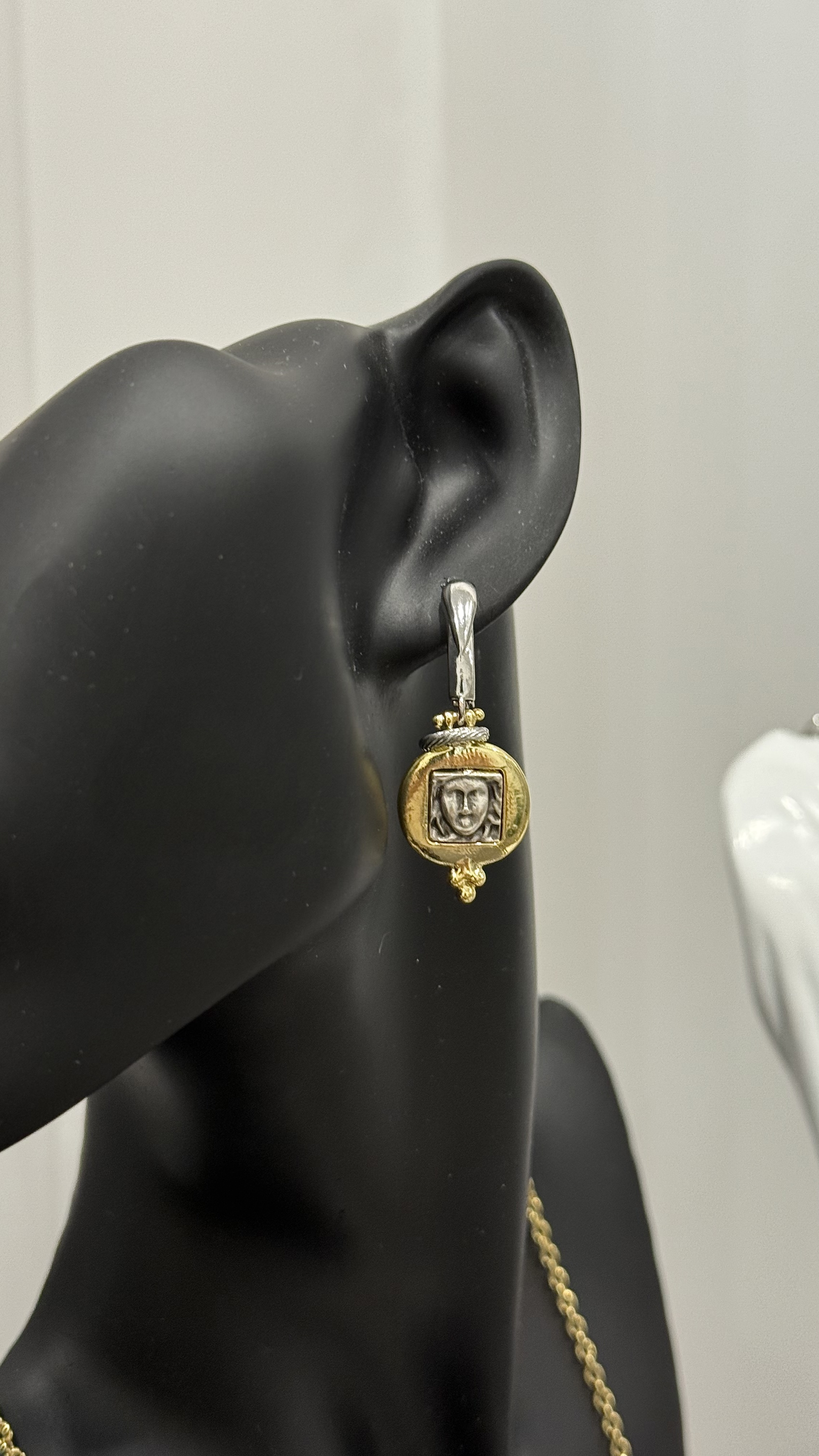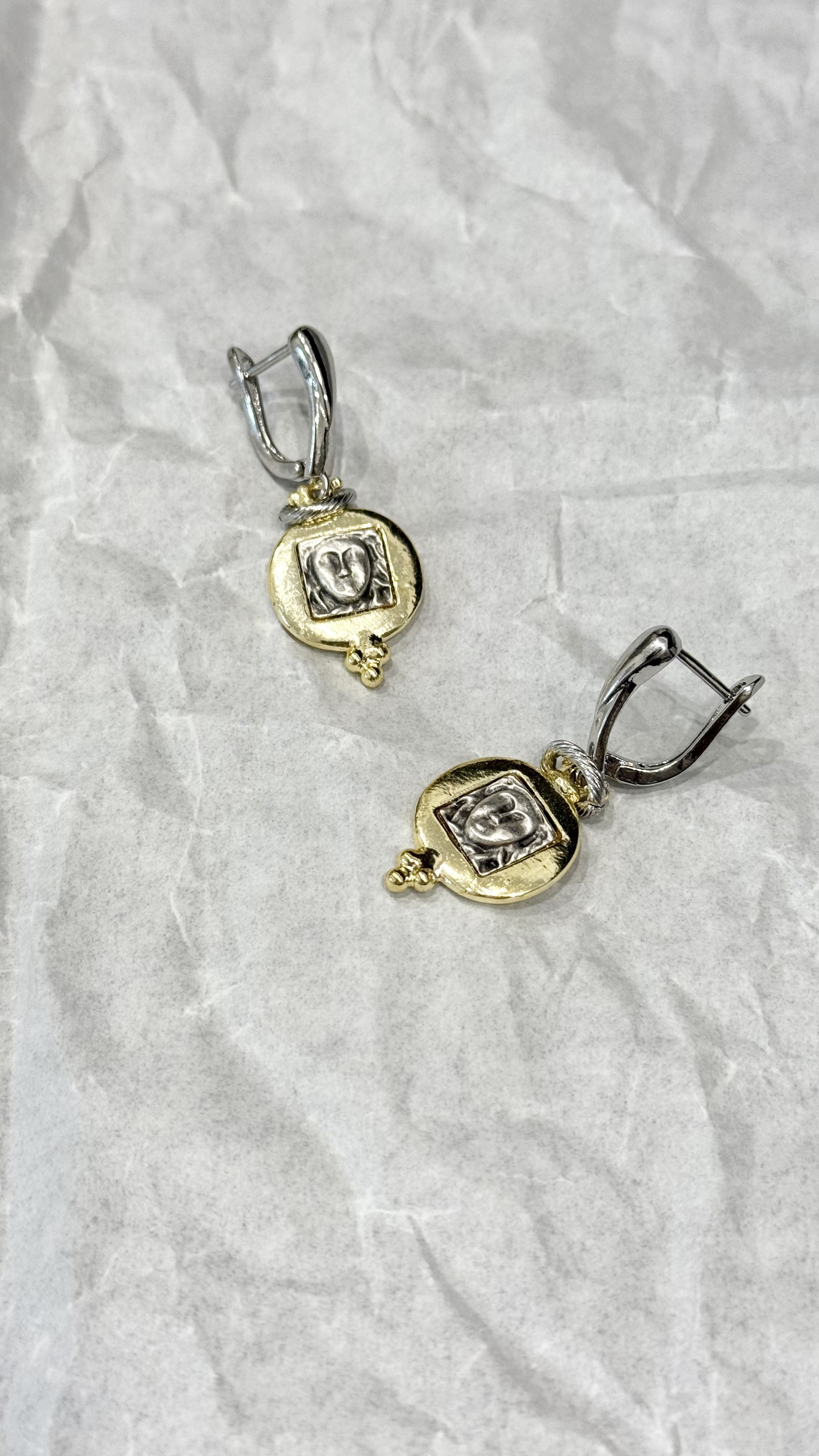 Серьги из бижутерного сплава с монетой. Английский замок. Длина 4 см.