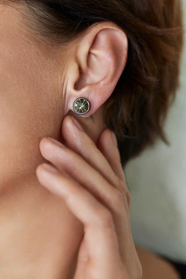 Серьги пусеты из ювелирной стали 316 L с кристаллами Swarovski. Диаметр 0,8 см.