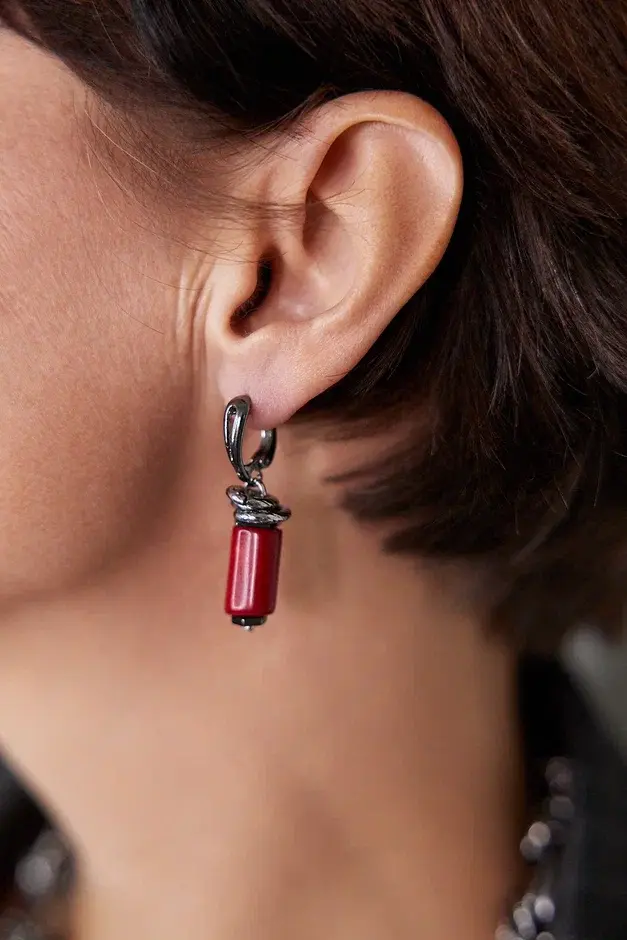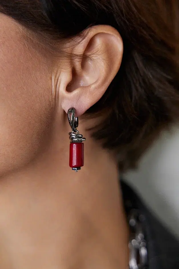 Серьги на английском замке с кораллом. Длина 3,5 см.