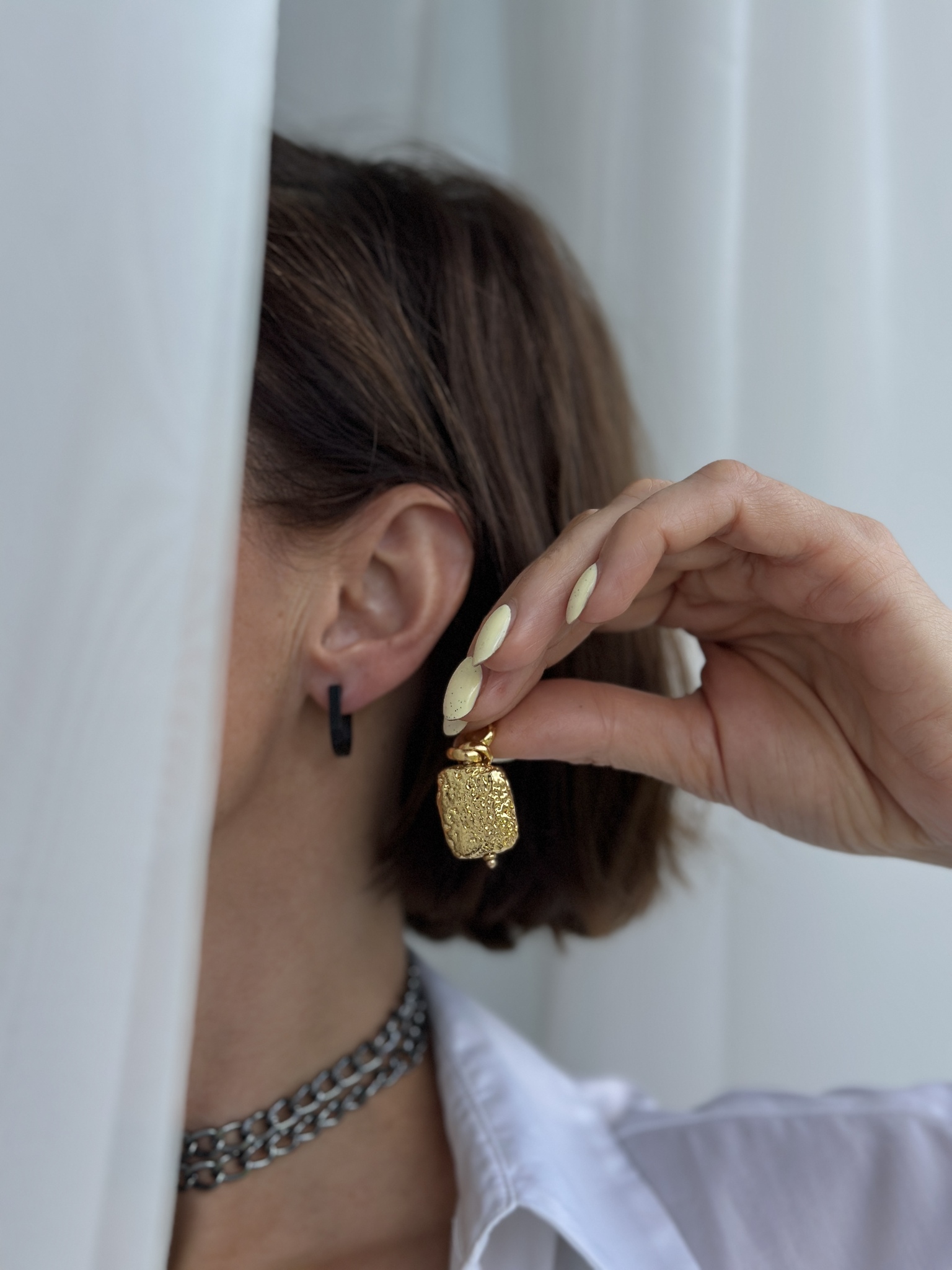Серьги-трансформеры из лавы и стали. Нижняя часть отстегивается.