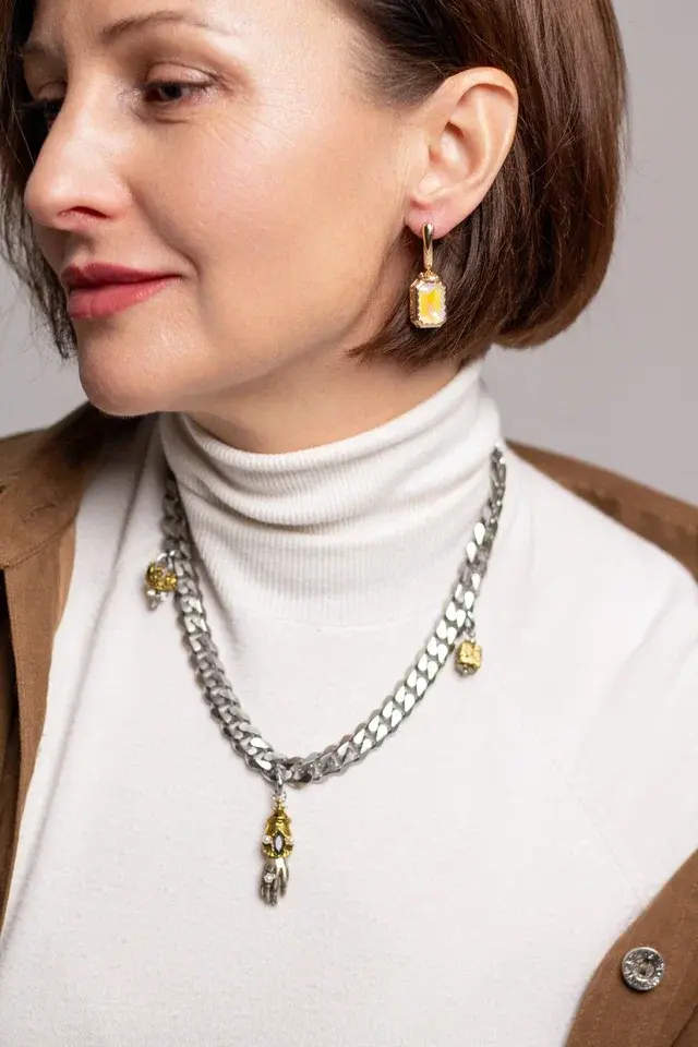 Колье из ювелирной (медицинской) стали с кристаллами. Длина 46-51 см.
