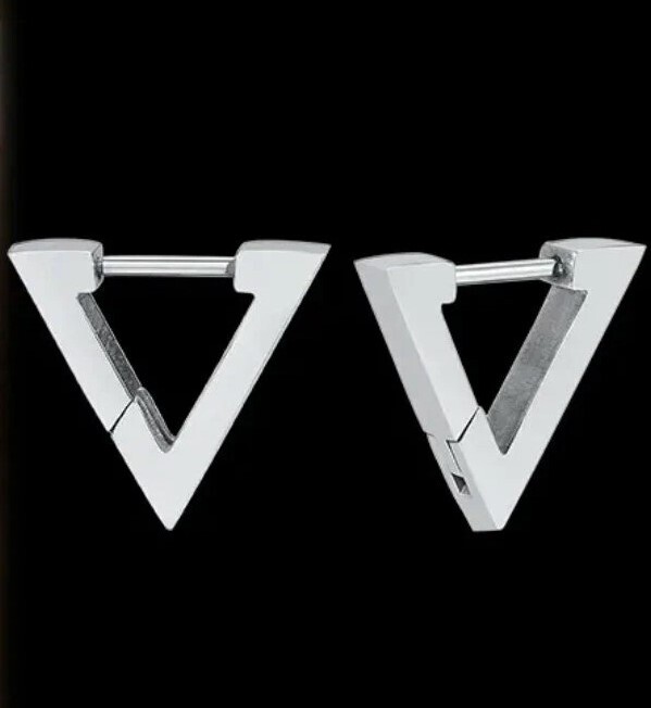 Серьги-треугольники стальные, оттенок - серебро. Длина стороны - 1,9 см.