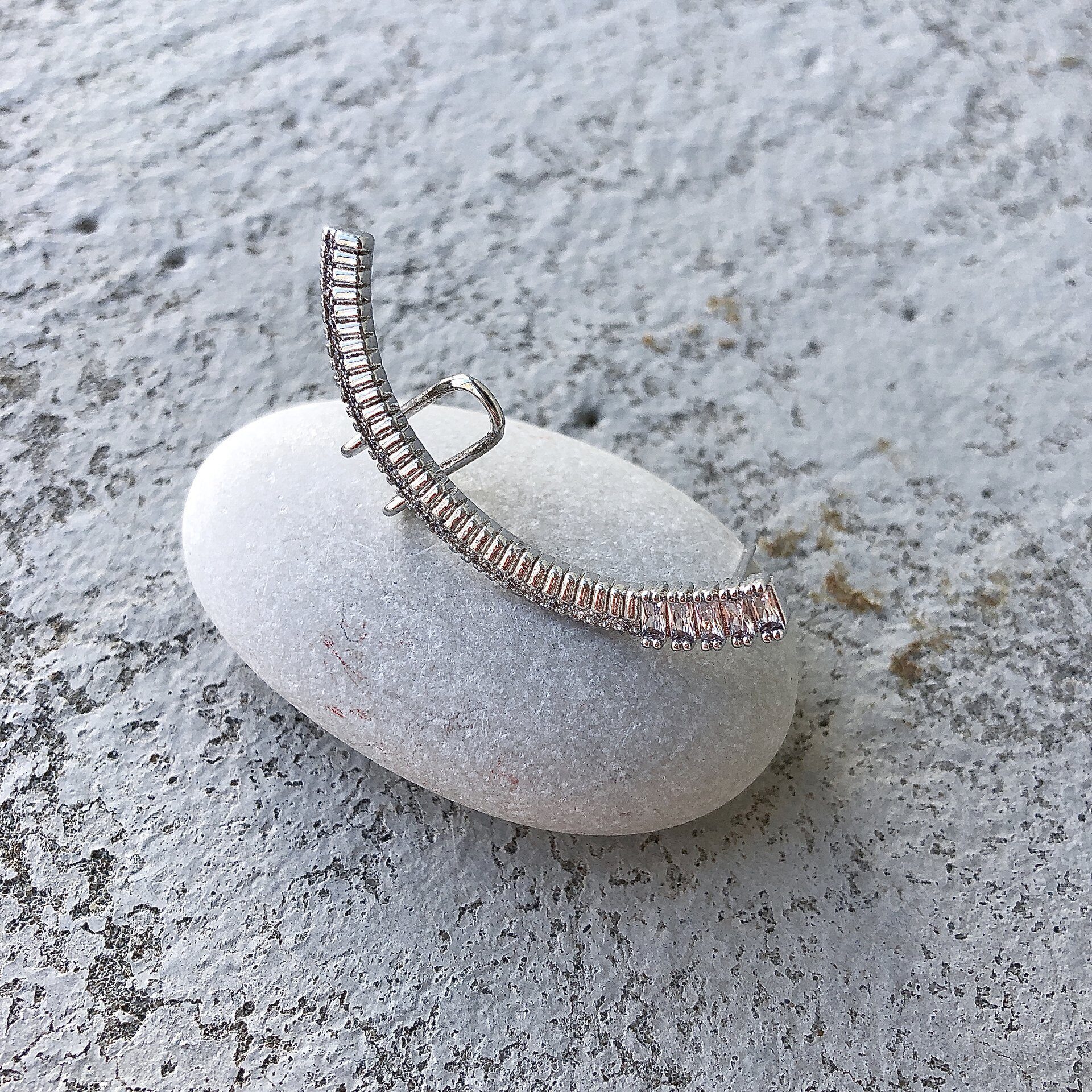 Кафф из бижутерного сплава с кристаллами. Оттенок серебро.