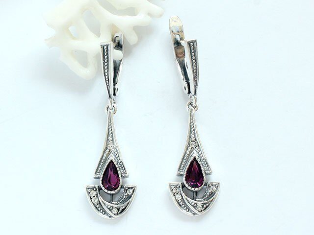 Серьги из ювелирного сплава с кристаллами Swarovski. Покрытие серебро. Английский замок.