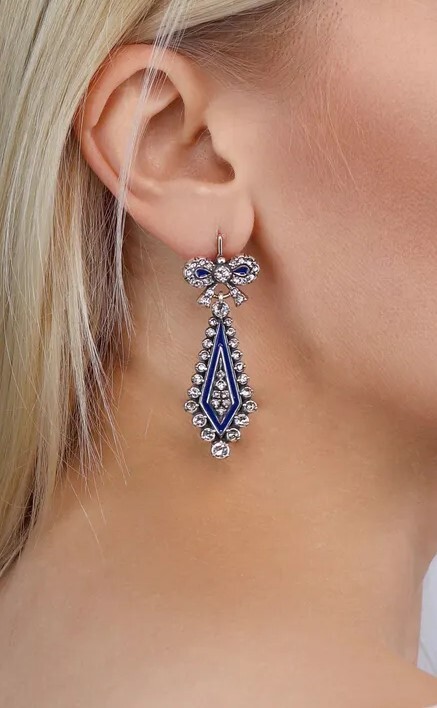 Серьги из ювелирного сплава с кристаллами Swarovski. Эмаль. Покрытие - черненое серебро. Английский замок.