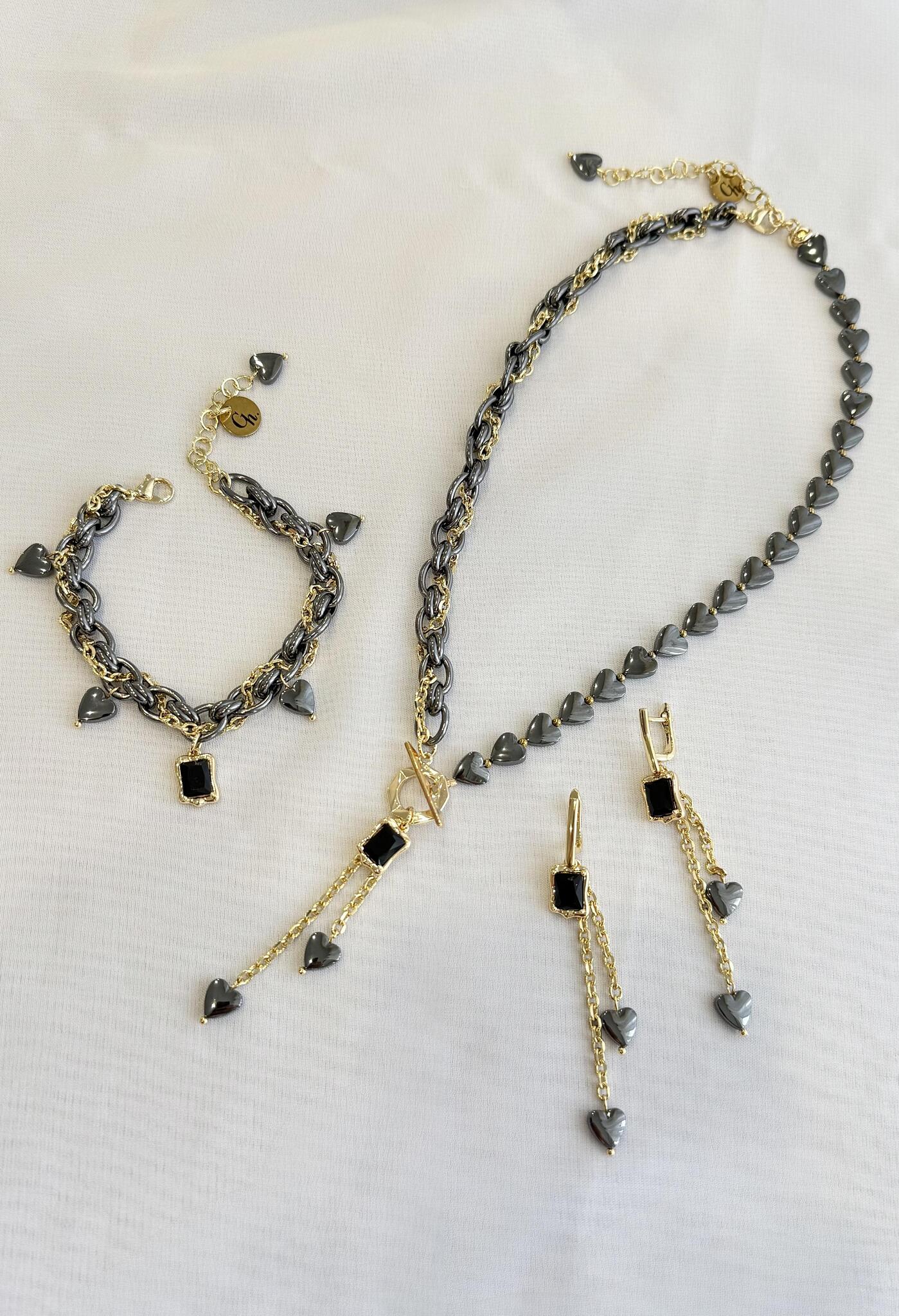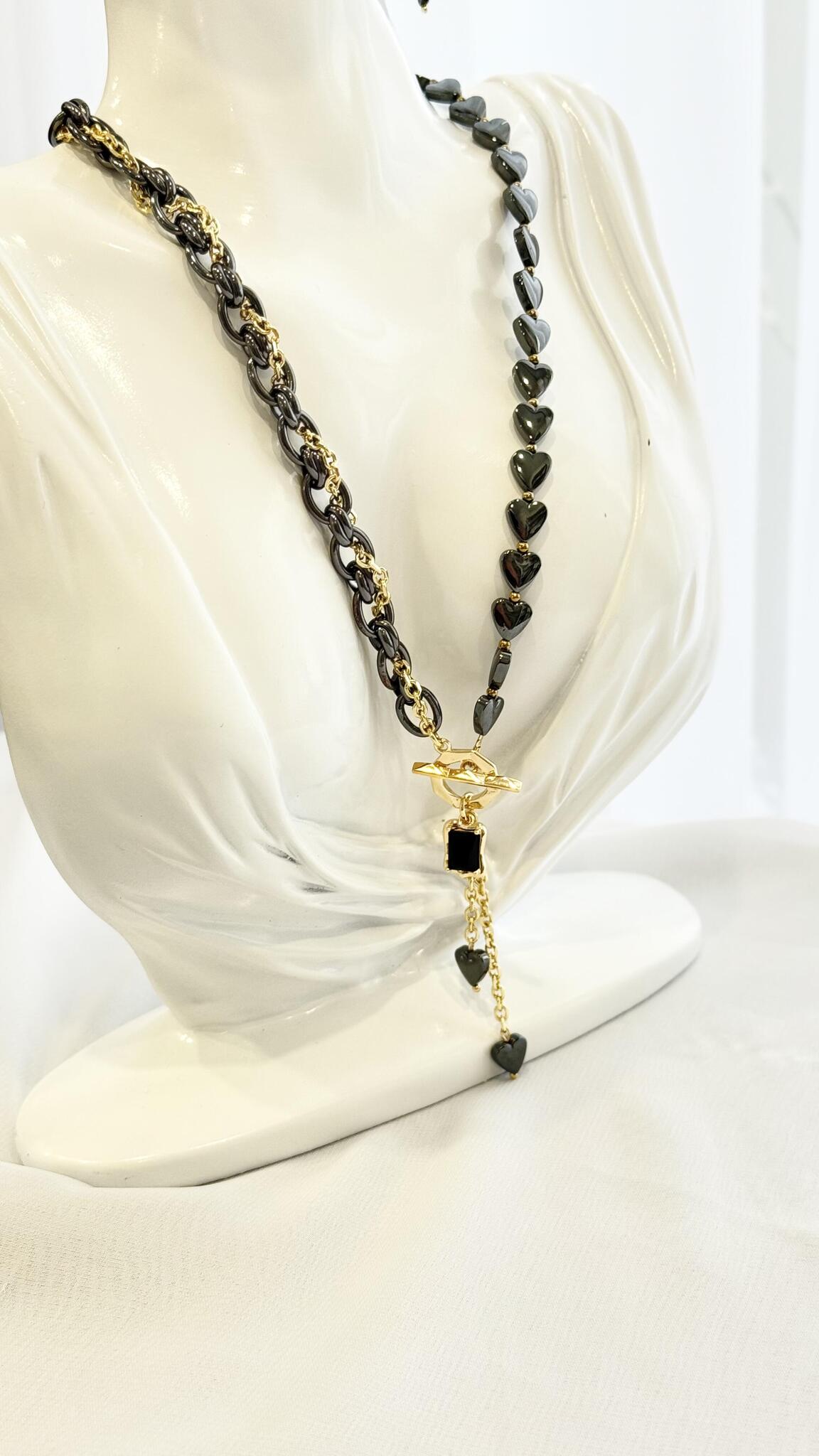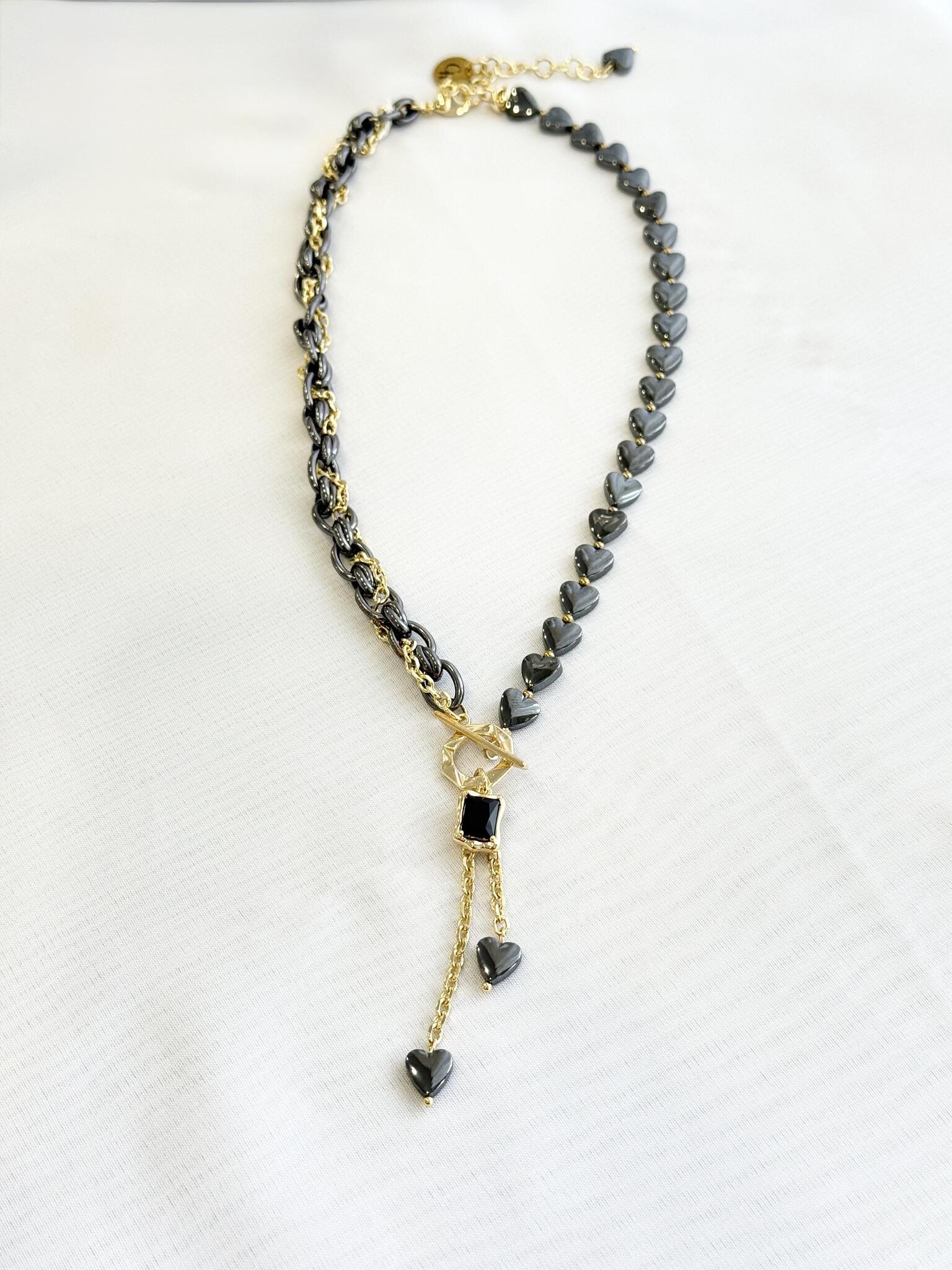 Колье с гематитами и черным цирконом. Оттенок - золото. Длина от 43 до 50 см.