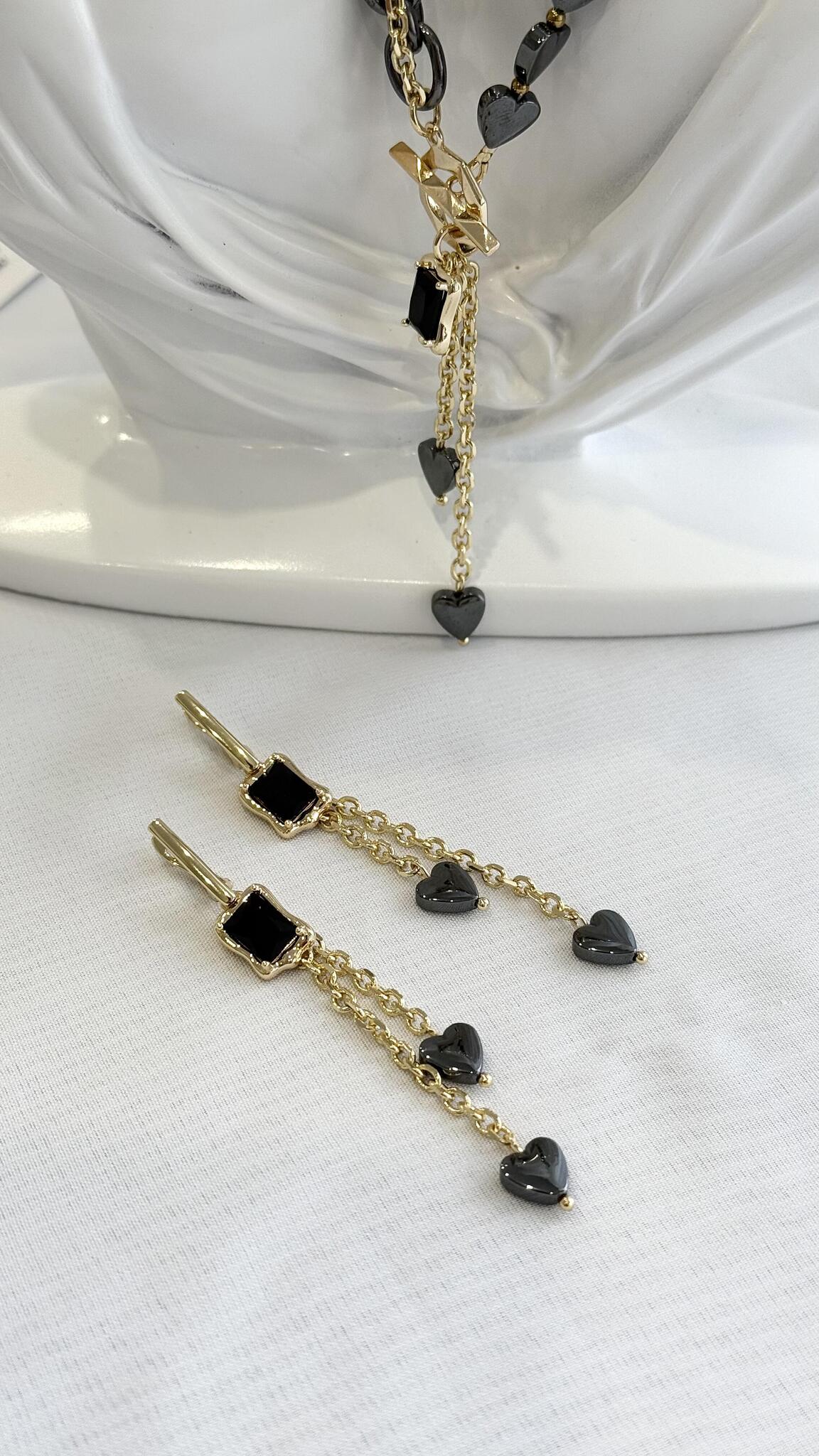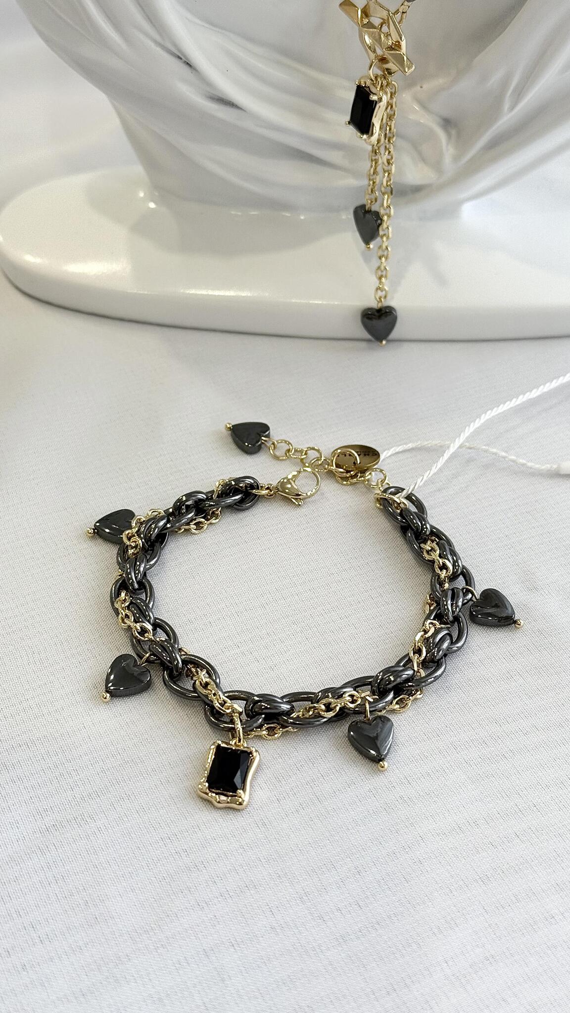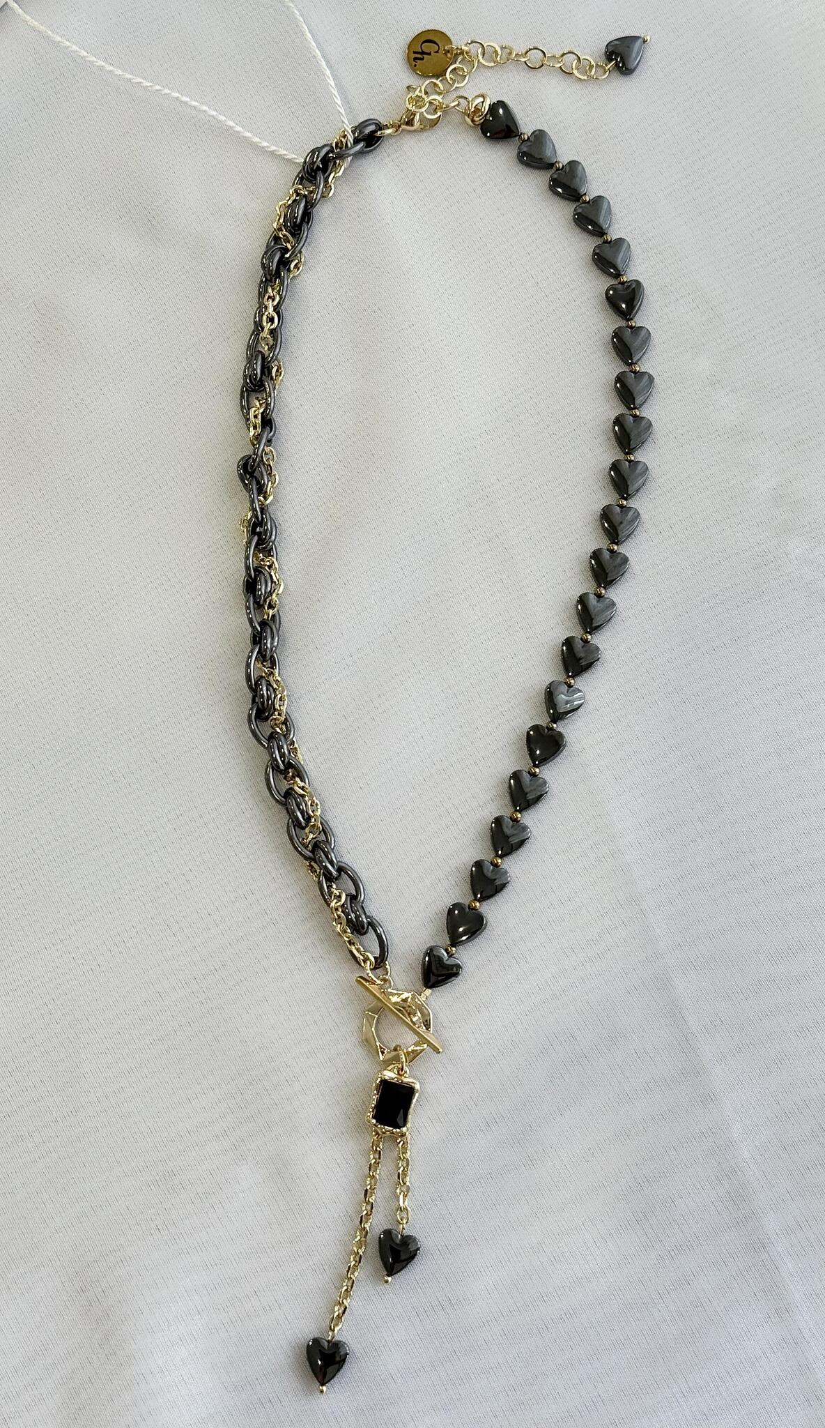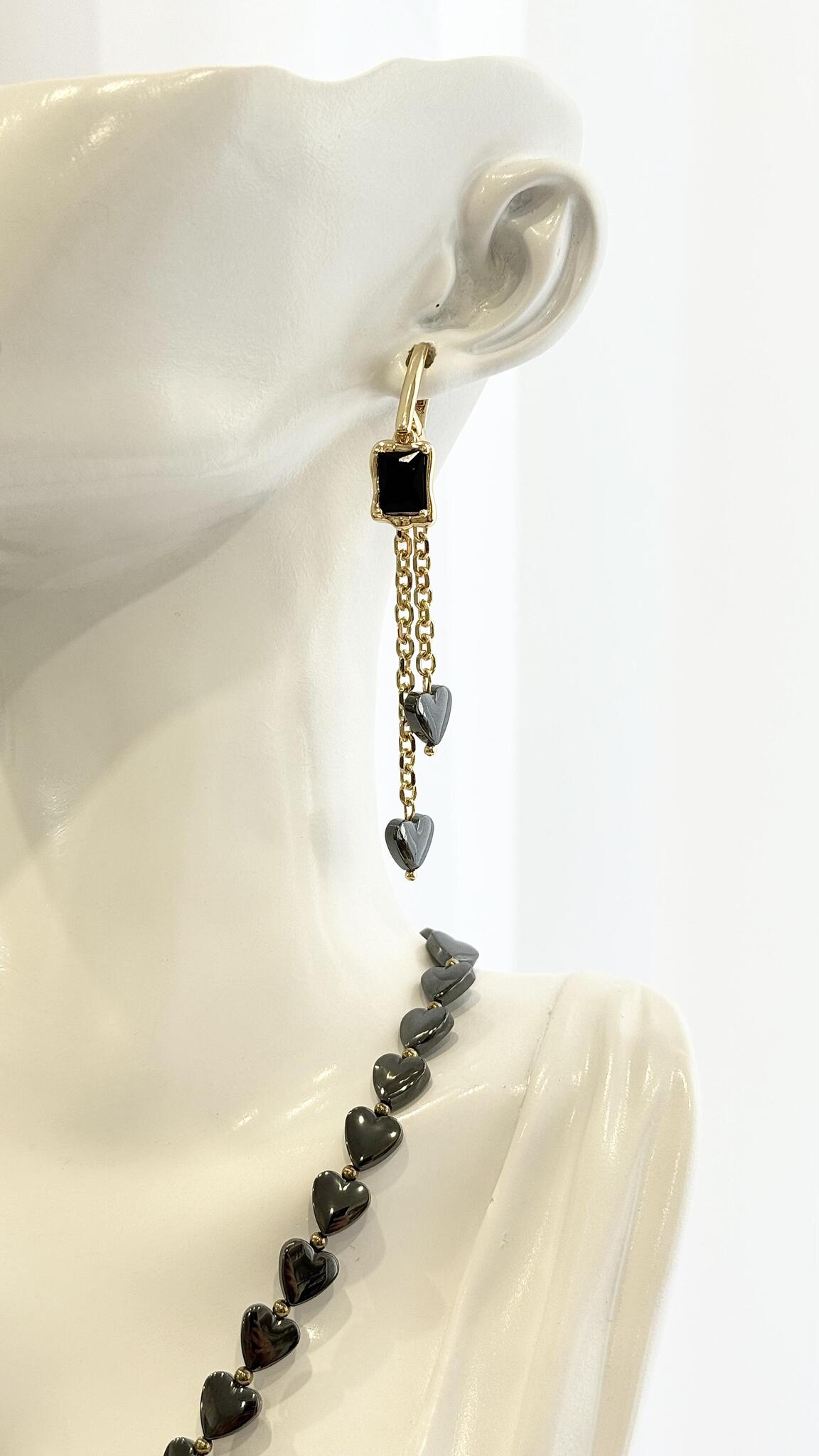 Колье с гематитами и черным цирконом. Оттенок - золото. Длина от 43 до 50 см.