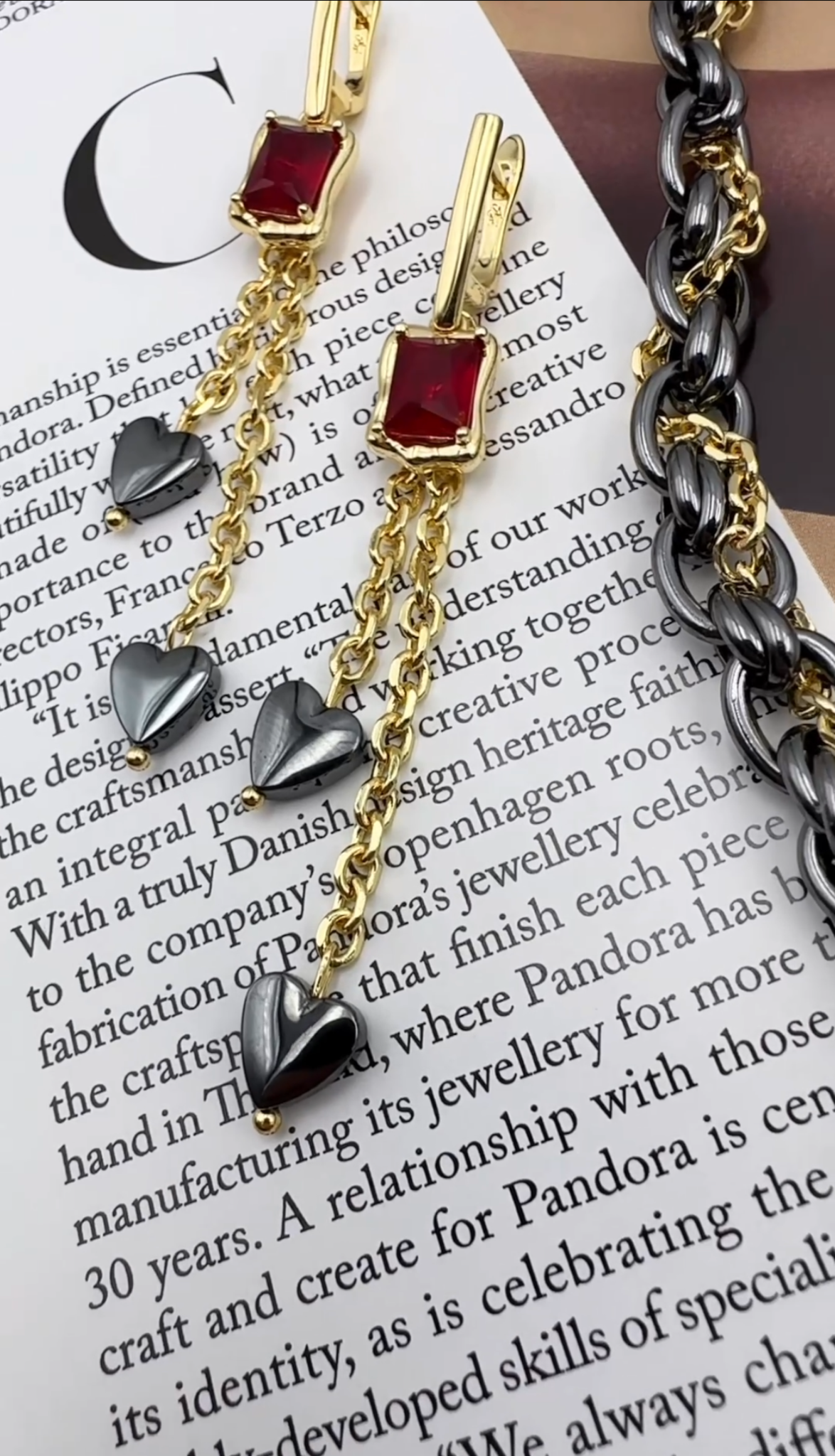 Колье "Амора" из гематита с красным цирконом, оттенок золото.