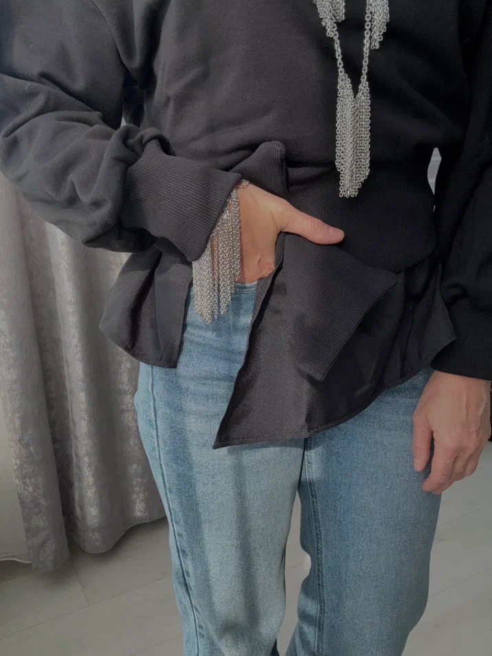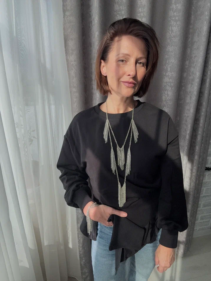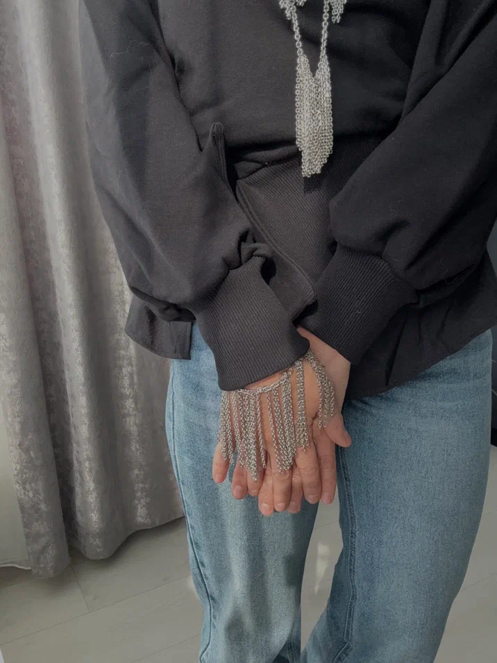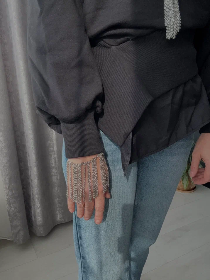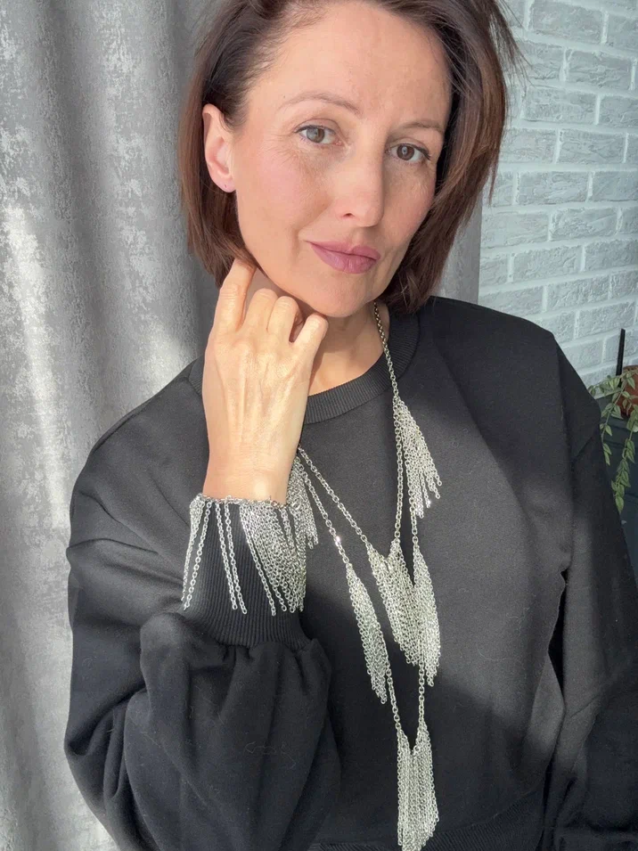 Колье "Бахрома, оттенок серебро с регулировкой длины.